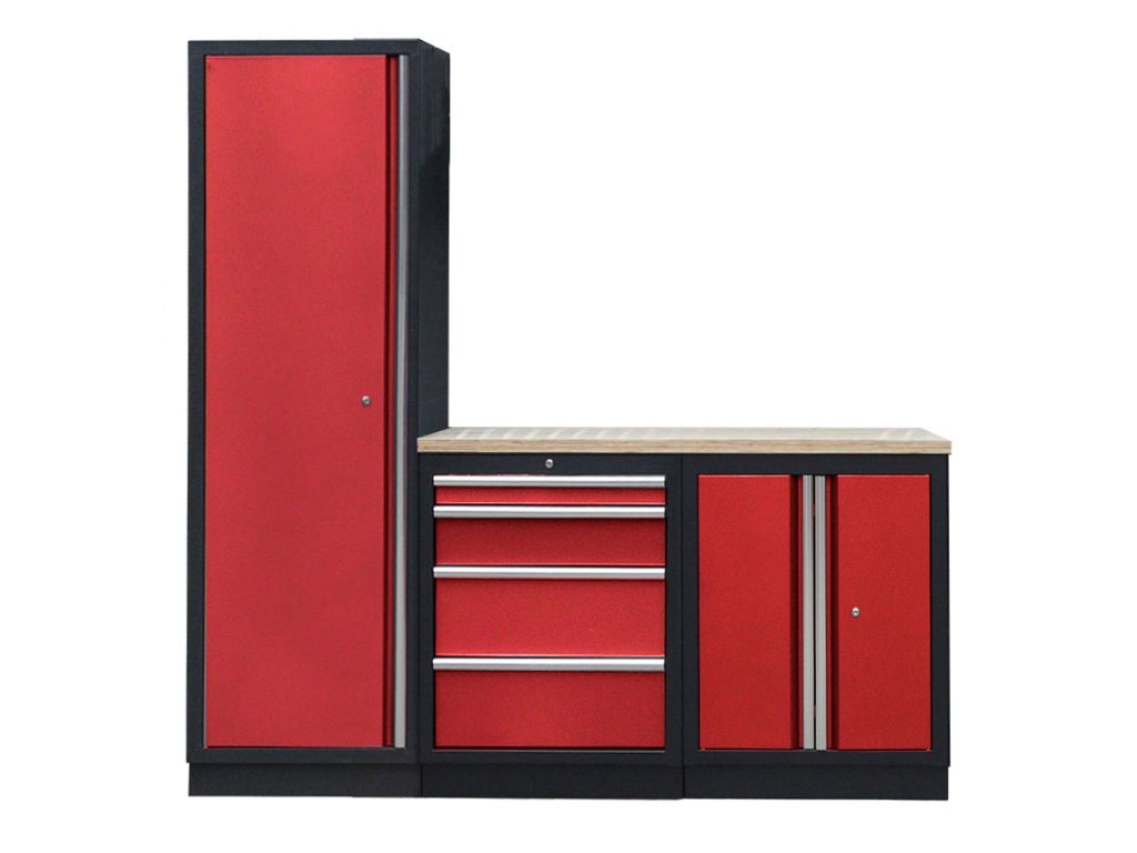 Sestava nábytku v sobě skrývá dostatečné množství úložného prostoru pro vaše nářadí, autotechniku i dílenské vybavení. V kombinaci s bytelnou pracovní deskou získáte multifunkční stěnu, se kterou vám půjde práce od ruky ve všech směrech.