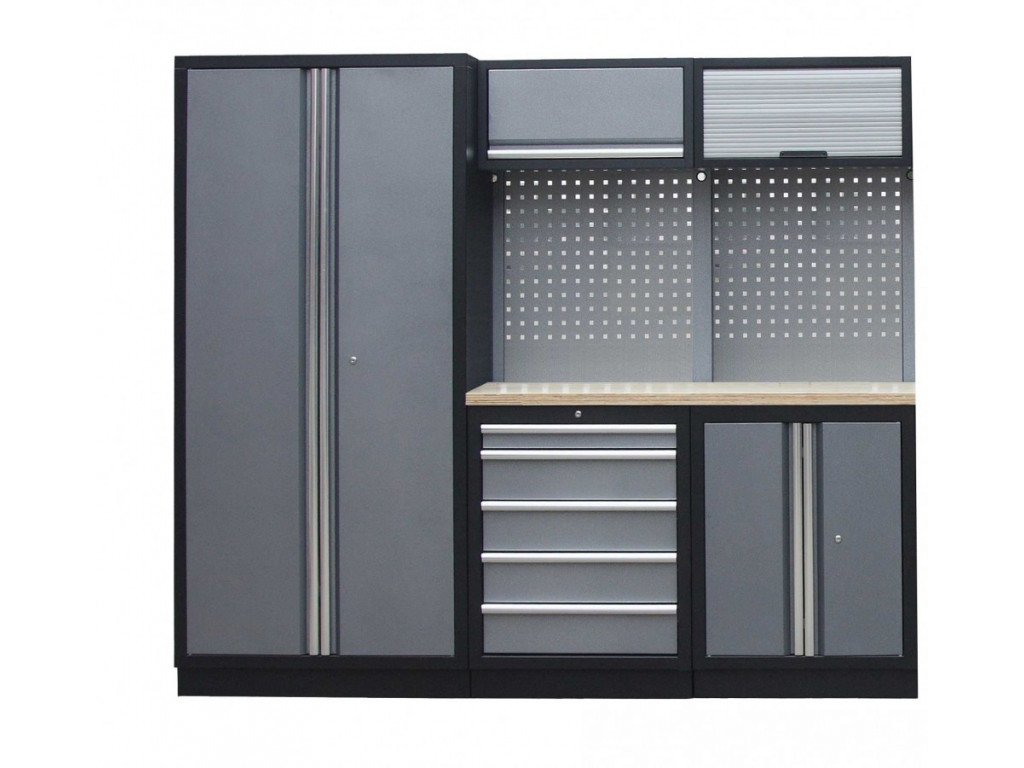 Sestava nábytku v sobě skrývá dostatečné množství úložného prostoru pro vaše nářadí, autotechniku i dílenské vybavení. V kombinaci s bytelnou pracovní deskou získáte multifunkční stěnu, se kterou vám půjde práce od ruky ve všech směrech.
