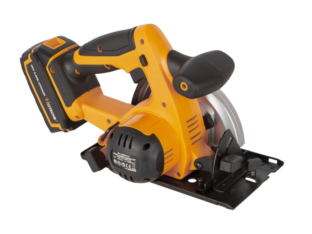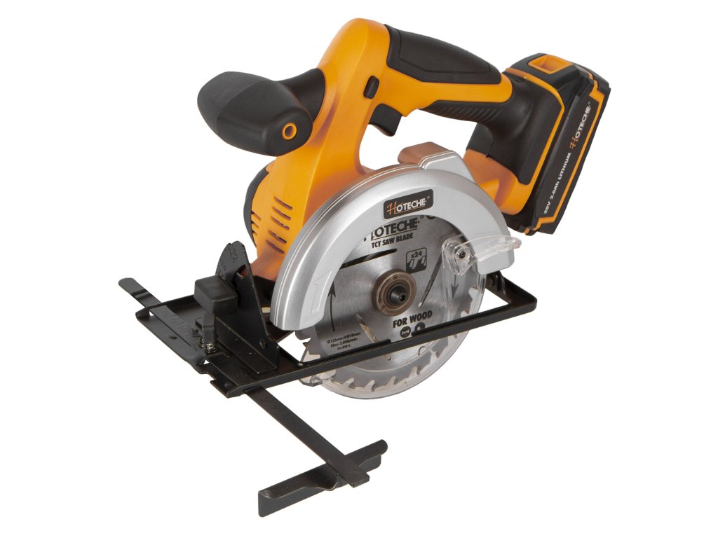 AKUmulátorová kotoučová pila (kocour) od značky Hoteche napájena akumulátorem 20 V 2 Ah.