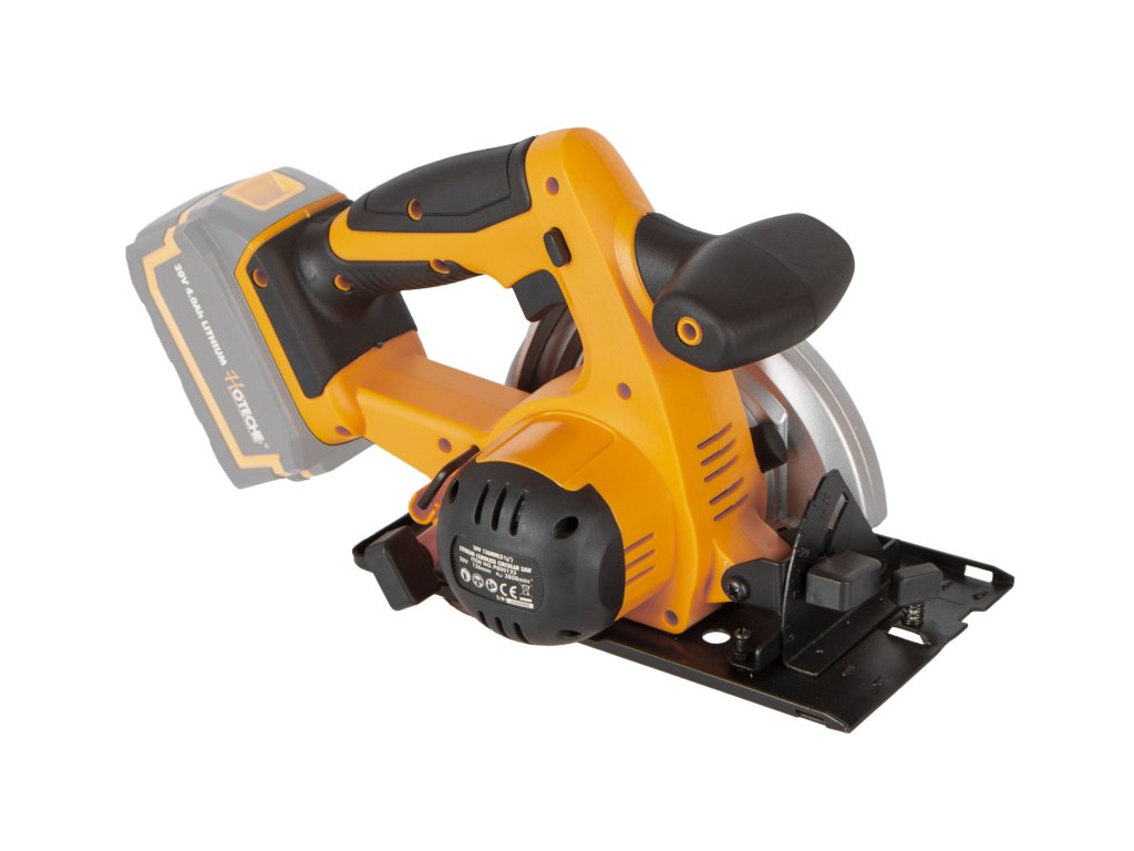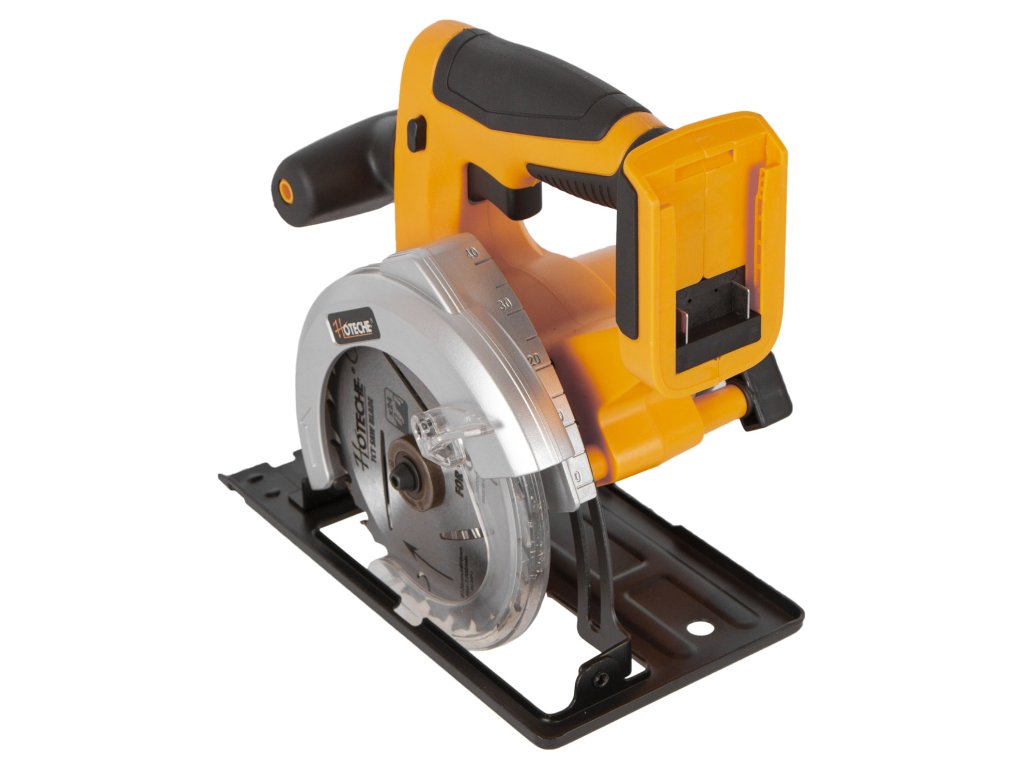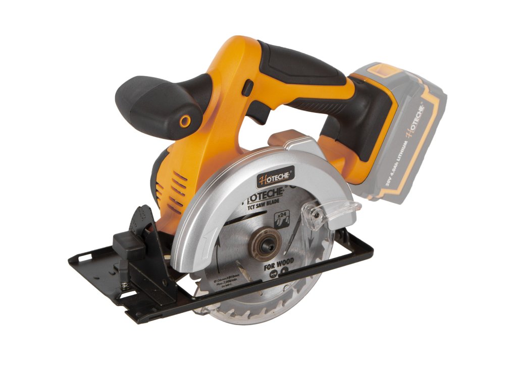 AKUmulátorová kotoučová pila (kocour) od značky Hoteche napájena akumulátorem 20 V.