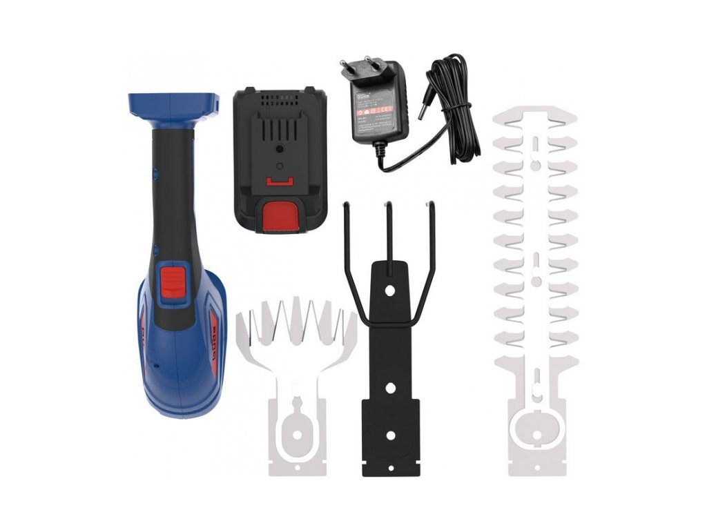 Akumulátorové nůžky 18 V ke stříhání živých plotů a keřů a zastřihování okrajů trávníku. Kompaktní a lehká konstrukce zaručuje pohodlnou manipulaci.