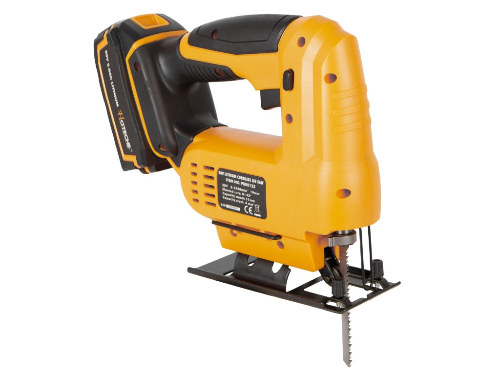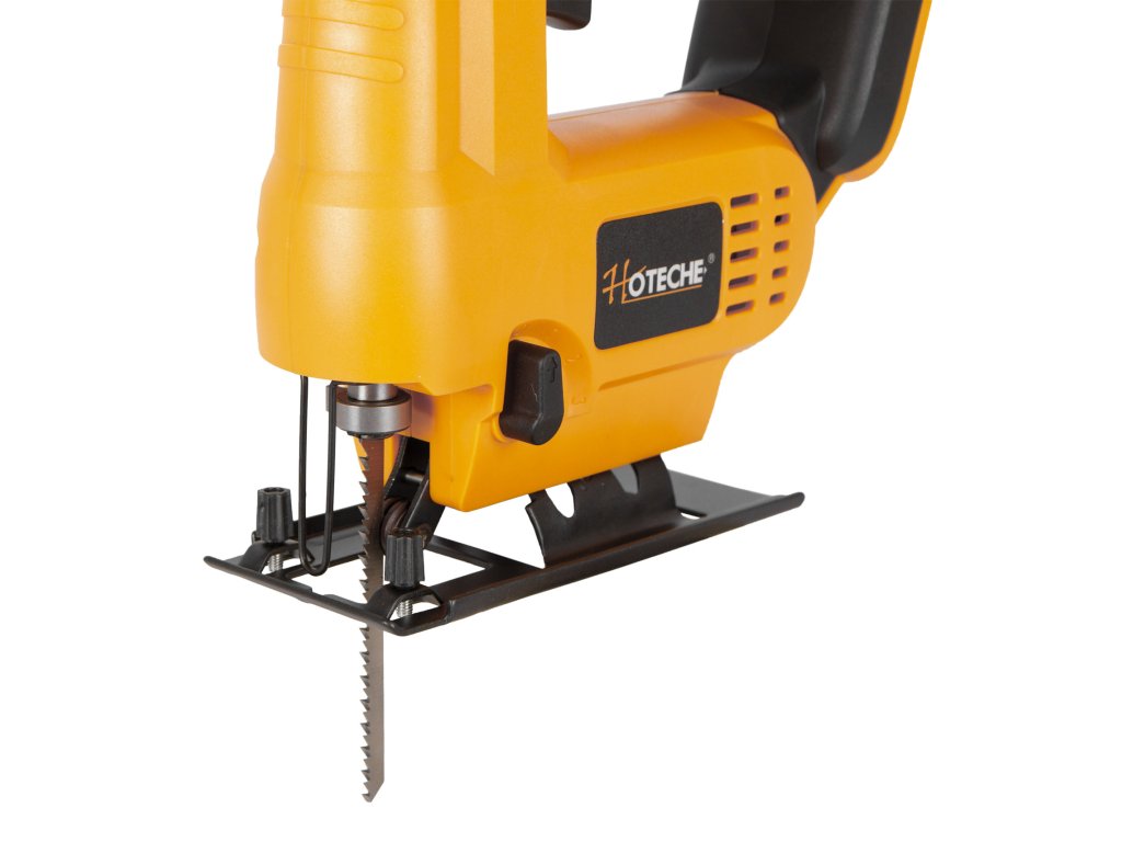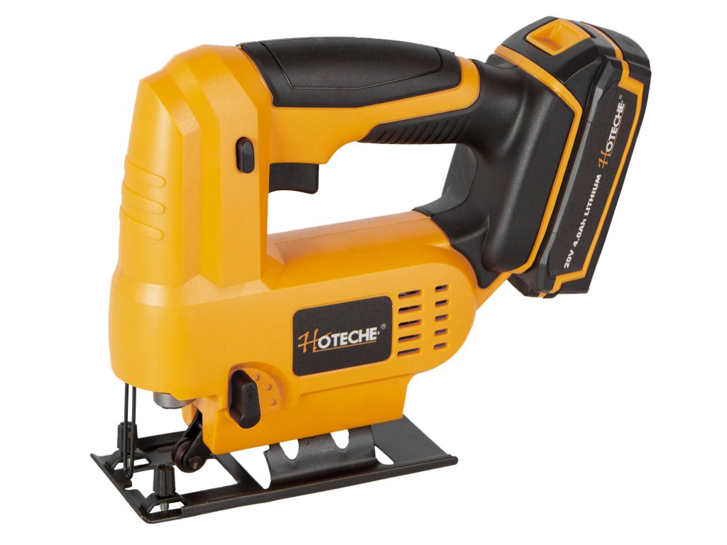 AKUmulátorová přímočará pila (přímočarka) od značky Hoteche napájena akumulátorem 20 V 2 Ah.