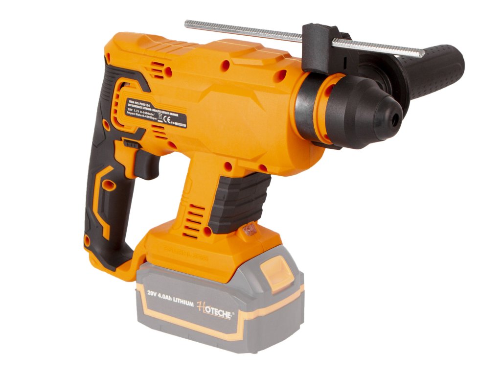 AKUmulátorové vrtací kladivo od značky Hoteche napájené akumulátorem 20 V.