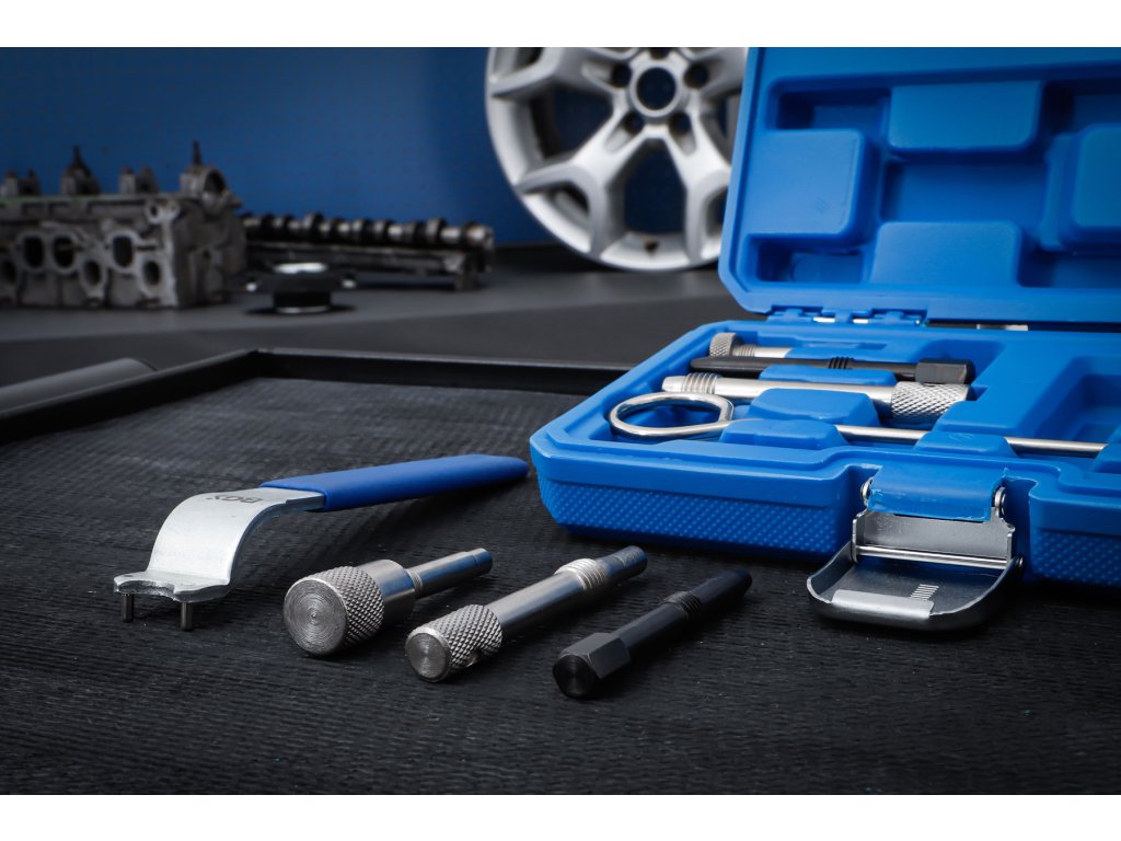 Aretace rozvodů vačkového hřídele vozidel Chrysler 2.5 CRD v sadě v modrém kufříku.