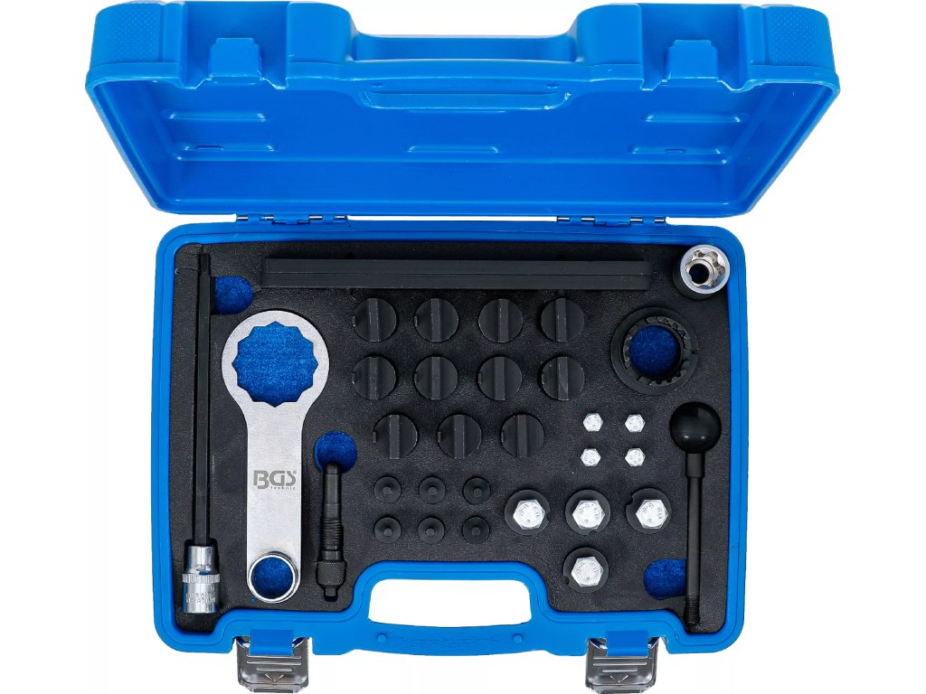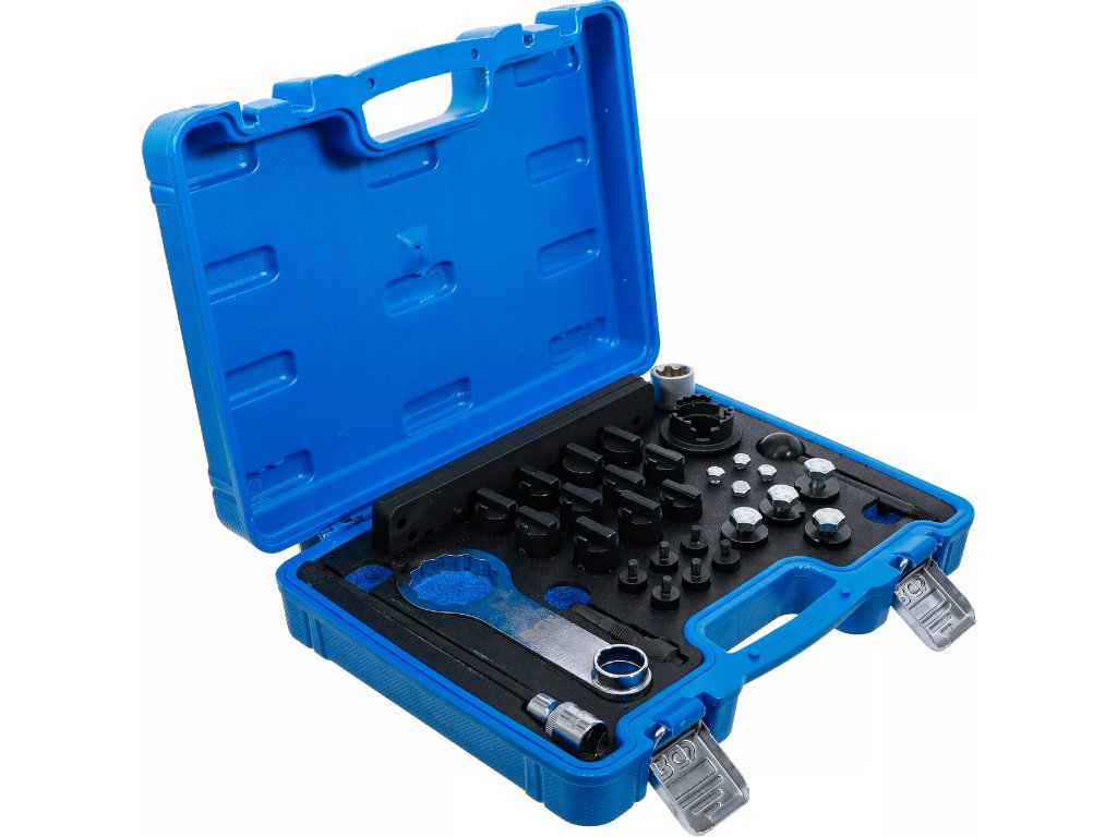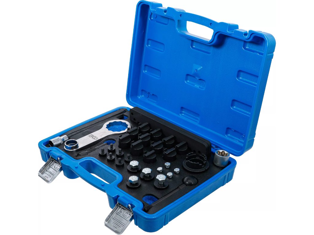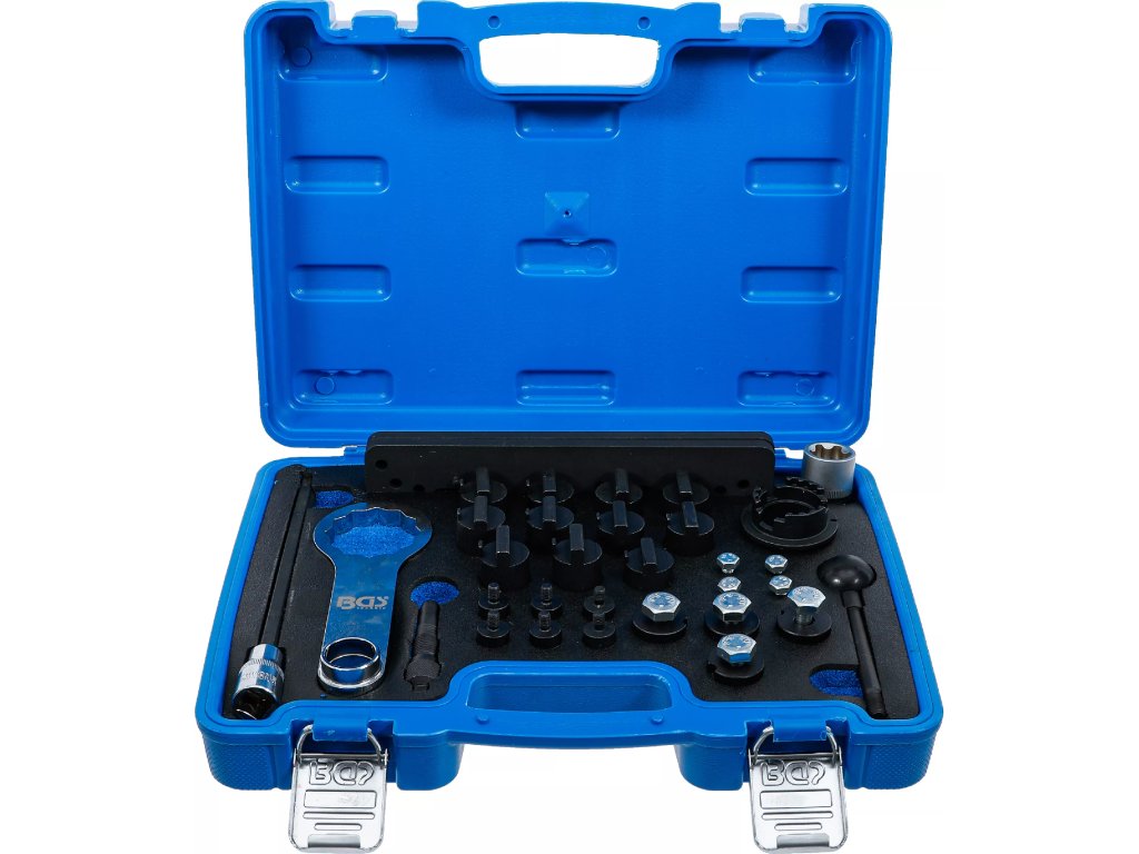 Obsahuje potřebné nástroje pro přesné seřízení vačkové hřídele a dalších klíčových komponent.