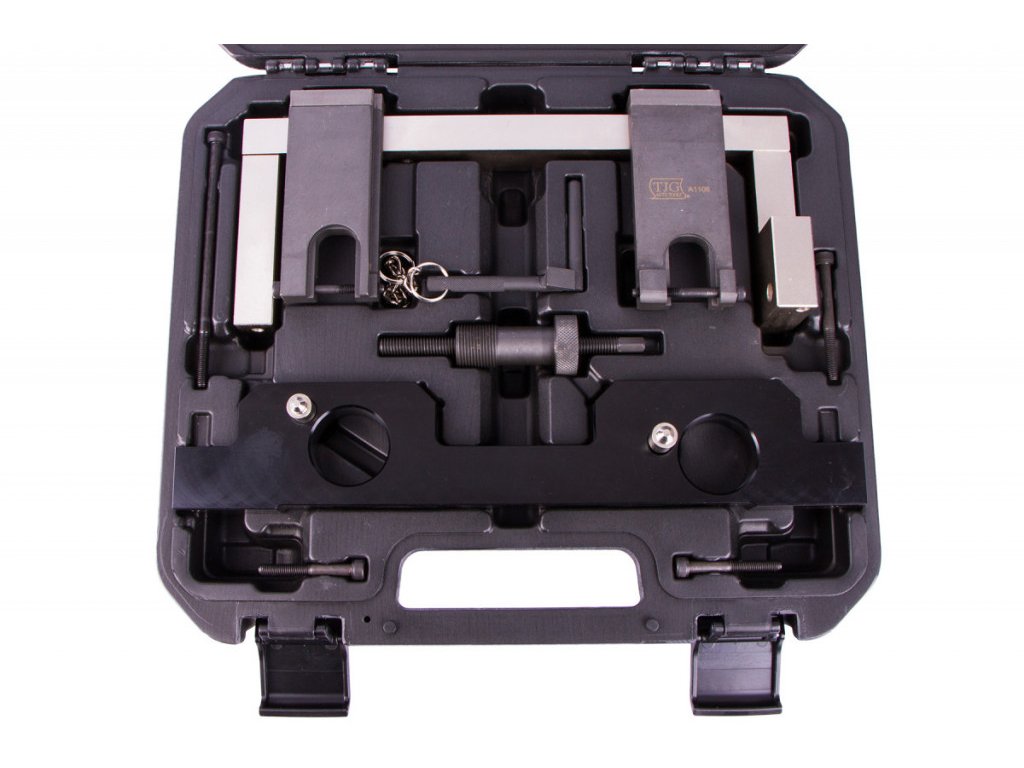 - Obsahuje komplexní sadu 8 aplikačních aretačních nástrojů, které jsou potřebné k provádění časování vačkové hřídele na motory N20 a N26.