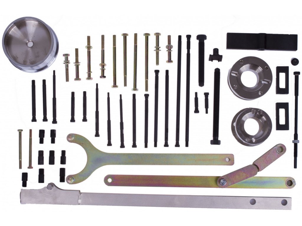 - Základní sada pro práce na motoru, jako je např. výměna rozvodového řemene, nastavení časování motoru a práce s vačkovou hřídelí.