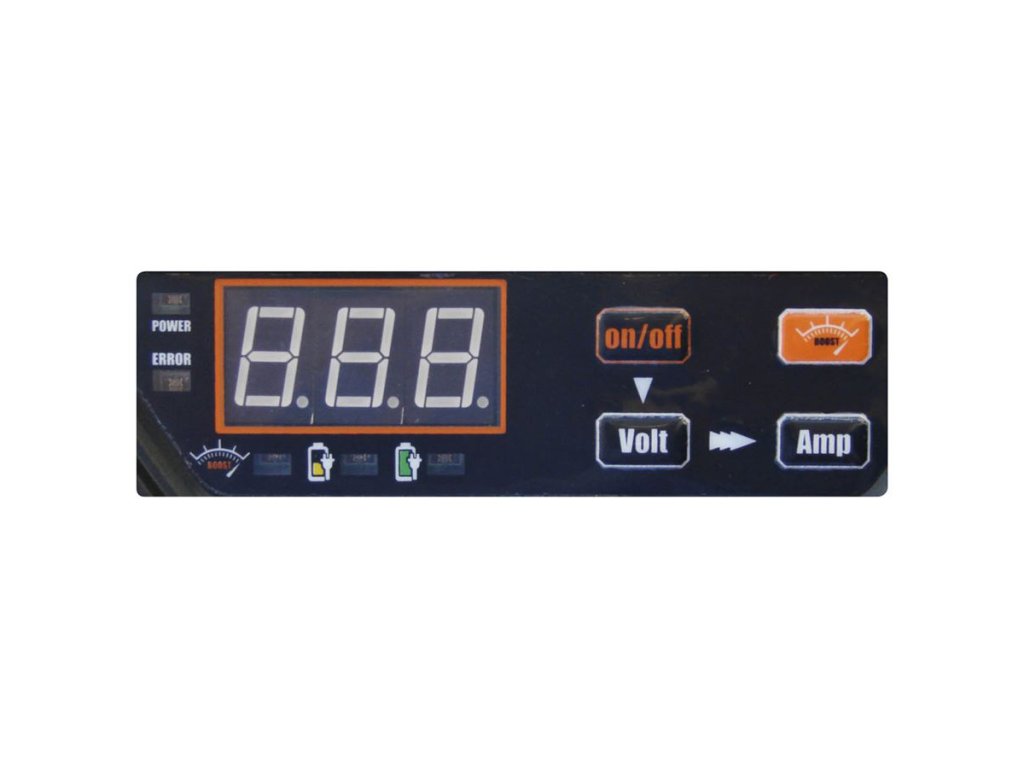 Konstrukce: mikroprocesorová řídicí jednotka, LED displej, chladicí ventilátor, 1,3 m nabíjecí kabely s připojovacími svorkami, ukládací přihrádka, 12 V zásuvka, síťový kabel 1,8 m, rukojeť pro přenášení.