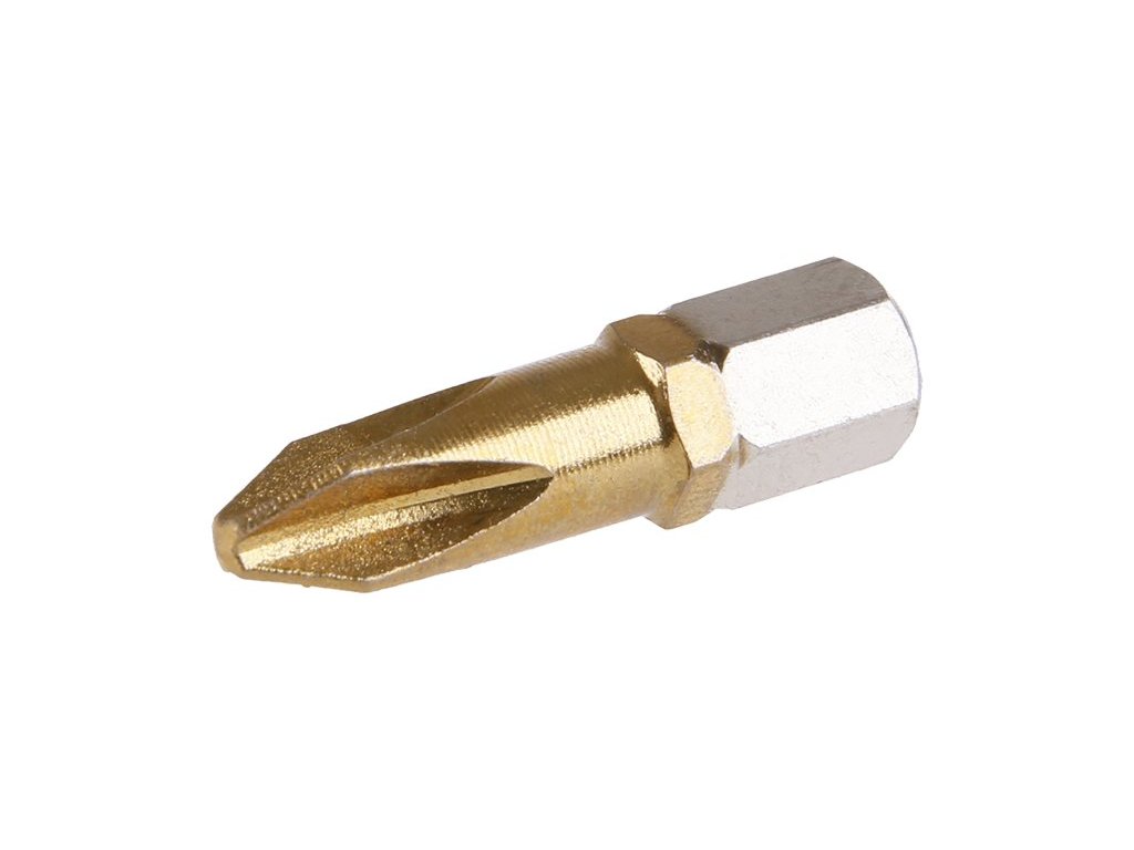 - TiN vrstva (nitrid titanu) vytvrzuje povrch bitu a chrání proti opotřebení