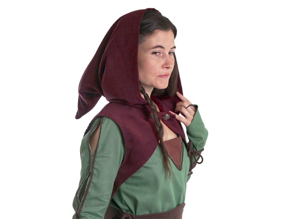 Kápě je skvělým doplňkem k historickému či fantasy kostýmu. V kombinaci s jednoduchým dámským bolerkem vytváří jedinečný doplněk nejen pro každou elfí princeznu, něžnou panovnici či udatnou bojovnici. Posuďte sami. Pokud patříte mezi ženy, které mají rády jedinečný styl, rozhodně jej využijete i ke každodennímu outfitu. Hodí se nejen k šatům, ale také k halence či k blůze. Fantazii se meze nekladou. Jednoduché dámské bolerko se špičatou kápí se zapínáním na ozdobný kovový knoflík je ušito z pohodlné scuby (broušený semiš). Užší střih v oblasti prsou dokonale zvýrazní vaše přednosti. Zadní strana bolerka je prodloužena až k pasu. Vybrat si můžete z více barevných variant: vínové, černé, zelené, hnědé.Buďte první, kdo napíše příspěvek k této položce.