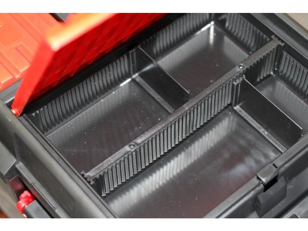 Zmíněné parametry a výbava činí z tohoto kufru perfektní skladovací prostor s vynikající variabilní organizací, který každému montérovi ulehčí práci a přenášení potřebného nářadí.