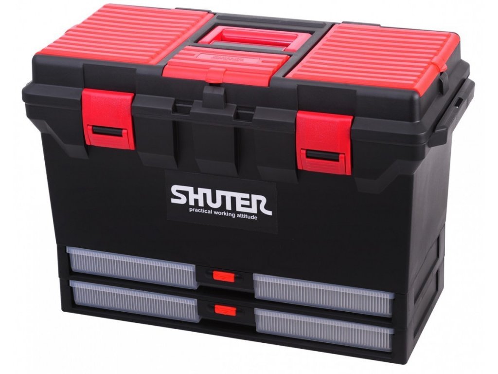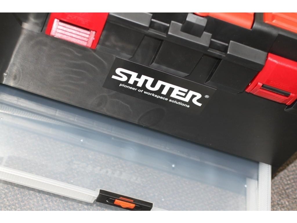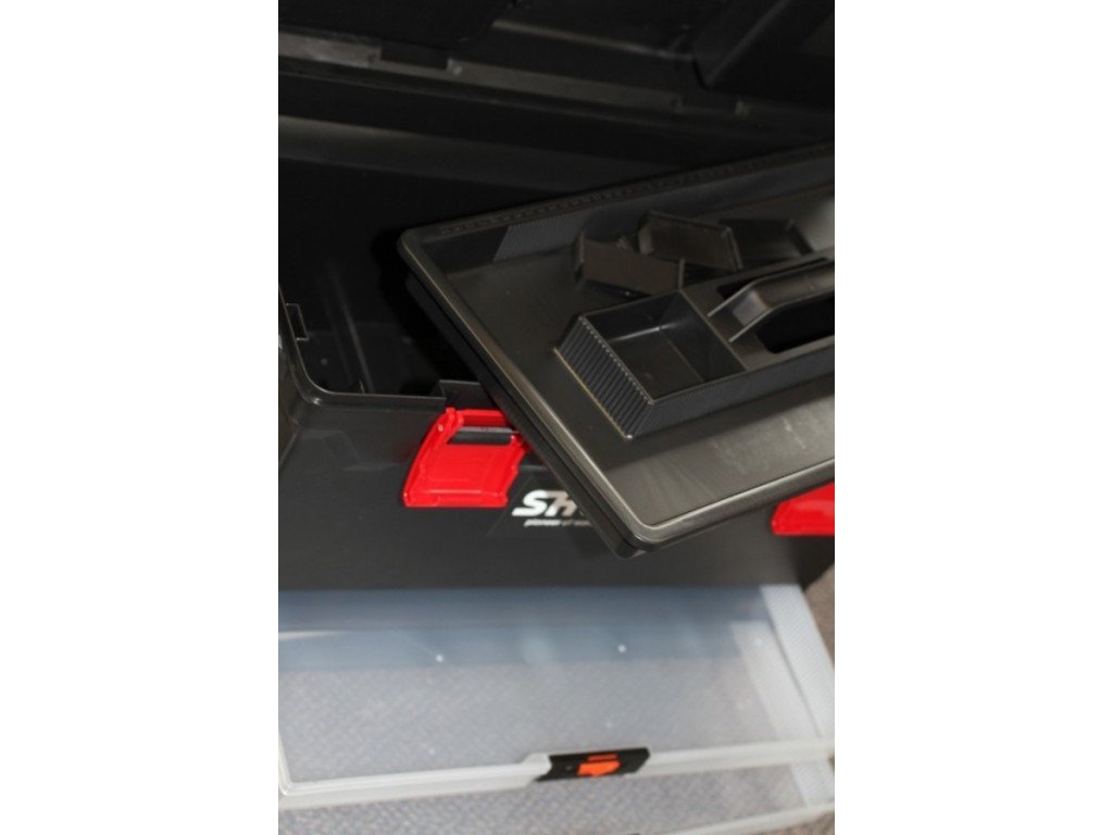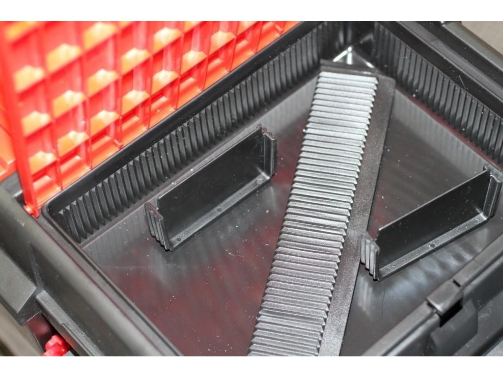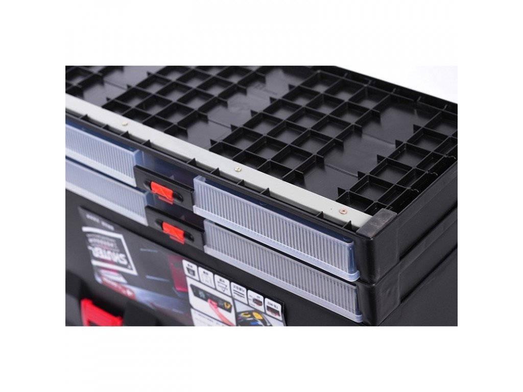 - 2 x vysouvací průhledné zásuvky pro ploché a řezné nástroje - uložením nožů, skalpelů a dalšího řezného nářadí zabráníte řezným ranám a odřeninám při hledání nářadí ve vnitřní části boxu,