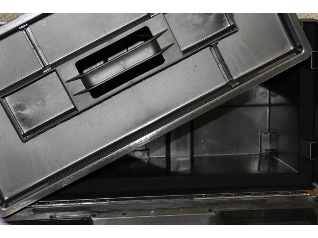 Propracovaný kufr z PP materiálu na nářadí, který díky svým rozměrům (š x h x v): 560 × 277 x 370 mm, pojme montážní materiál a veškeré ruční nářadí, jako jsou: kleště, klíče, kladiva, dláta, sady bitů, ráčny a trháky atp.