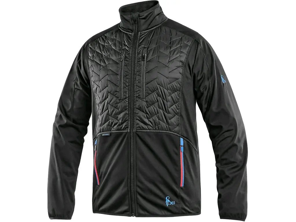 Bunda CXS LEONIS, pánská, černá s HV modro/červenými doplňky