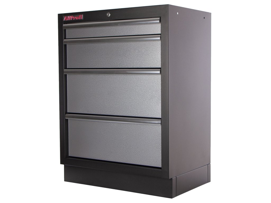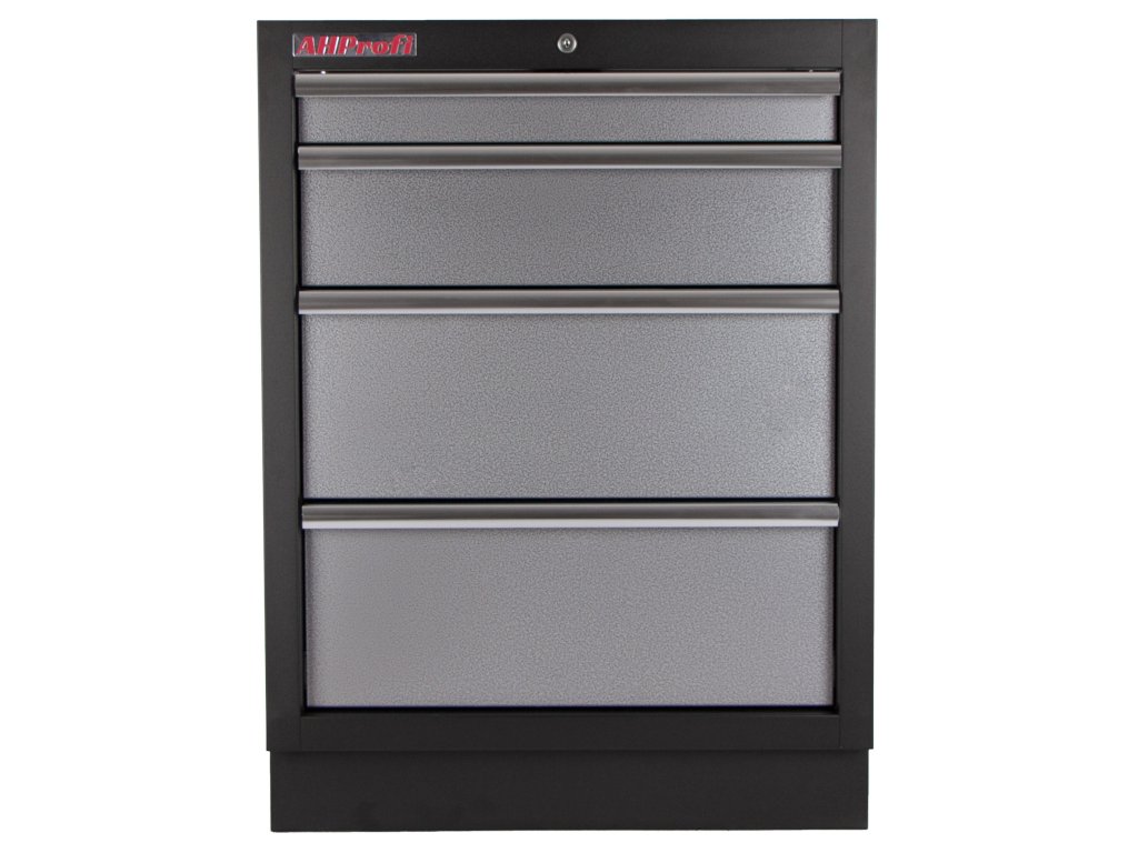 Celokovová dílenská skříň se 4-mi zásuvkami zajišťuje maximální přehled, úložnou kapacitu a odolnost i v náročném provozu.