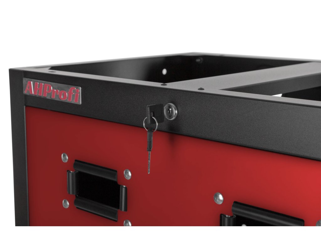Celokovová PROFI RED dílenská dvoukřídlá skříňka s otvory pro uskladnění samonavíjecích bubnů na vzduch (XBA02) nebo elektřinu (12 m, 20 m).