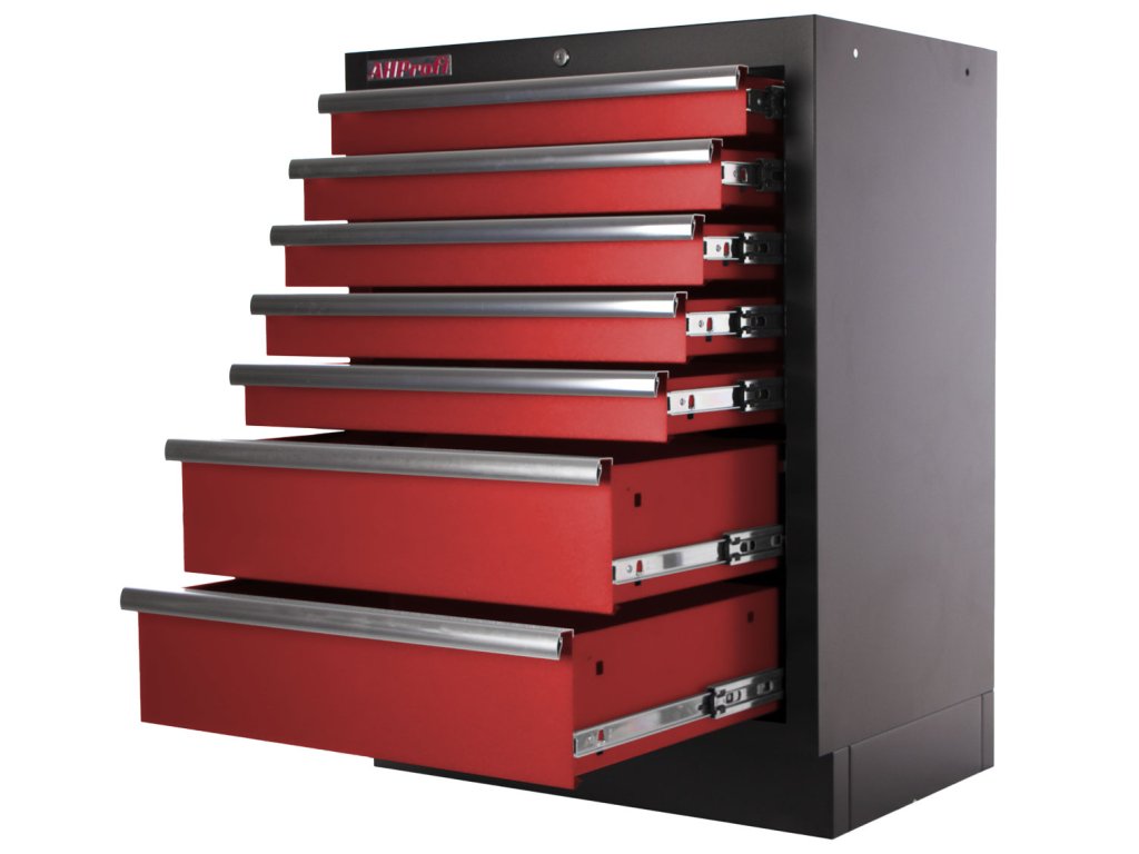 Celokovová PROFI dílenská skříňka s 7-mi zásuvkami je vhodná do profesionálních servisů, dílen, ale také do garáží pro uskladnění širokého sortimentu zboží i ručního nářadí, na které se pak nepráší a snáze se udrží přehledně uklizené na správném místě.