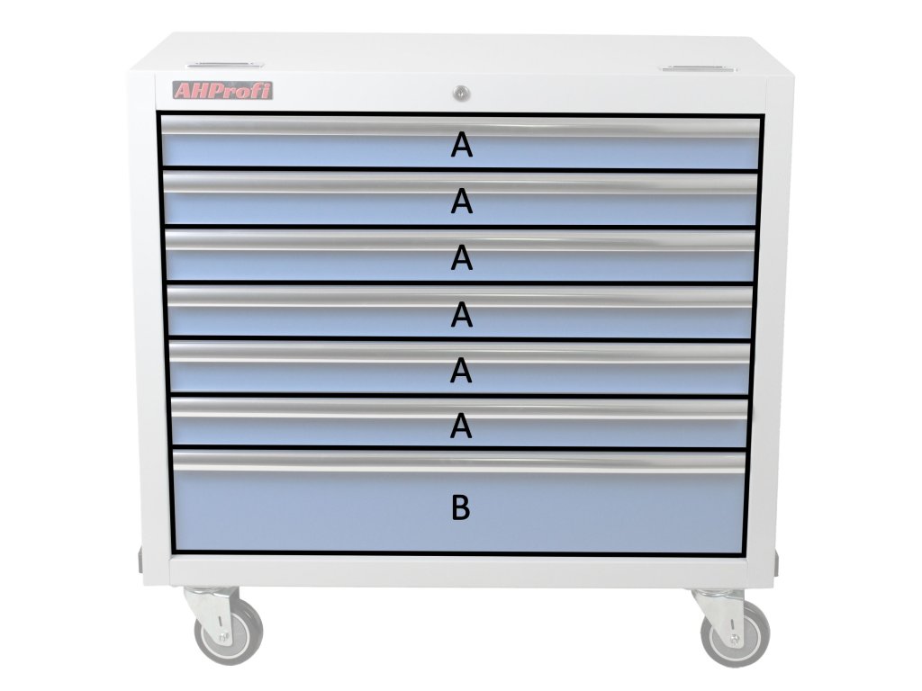 Součástí vozíku je 7 uzamykatelných zásuvek pro uložení výplní dílenského vozíku s ručním nářadím. Zásuvky jsou osazeny kuličkovými ložisky v pojezdech, čímž se zvyšuje jejich nosnost bez vlivu na výbornou vlastnost výjíždění/zajíždění.