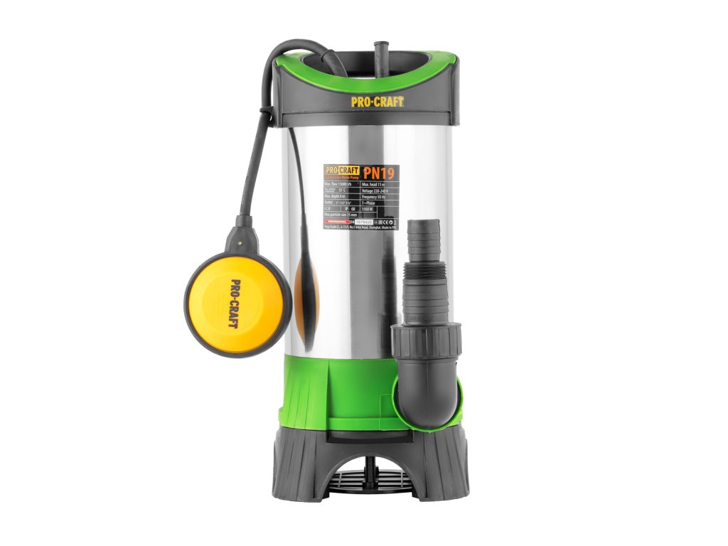 Vodní kalové polnorné čerpadlo Procraft PN19 je určeno k odčerpání čisté i znečištěné vody s příměsí drobných částí z nádrže, rybníku, jezírka. Silný motor s příkonem 1100 W zaručí výkonnost 15000 litrů za hodinu čisté a znečištěné vody do výšky až 11 m. Ponoření je možné až do 8 metrů. Čerpadlo má odolný nerezový obal, který zvyšuje jeho odolnost a lépe chladí motor a zvládne odsát měkké nečistoty až do 35mm. Plovákový spínač automaticky zapíná a vypíná čerpadlo v závyslosti poklesu hladiny. Čerpadlo je vybavené tepelnou pojistkou přetížení, které vypne při 36°C. Součástí čerpadla je 10m dlouhý přívodní kabel s vidlicí. Balení karton.