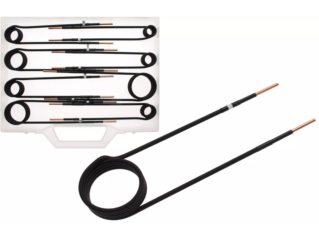 Sada 8 ks rovných nasazovacích cívek pro indukční ohřev.