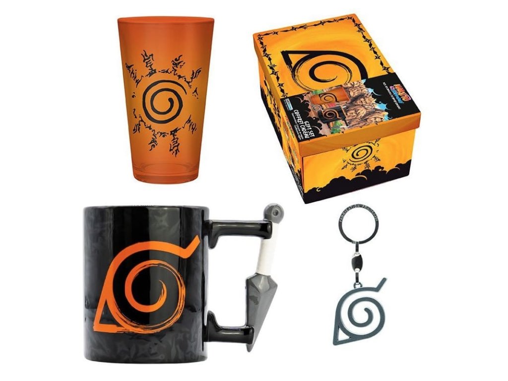 Jedinečná dárková sada pro fanoušky japonské mangy Naruto Shippuden se nachází uvnitř krásné krabice a obsahuje hrnek s tvarovaným uchem (460 ml), sklenici (400 ml) a kovovou klíčenku - vše opatřeno symbolem vesnice Konoha, odkud slavní ninjové pocházejí.Doplňkové parametry