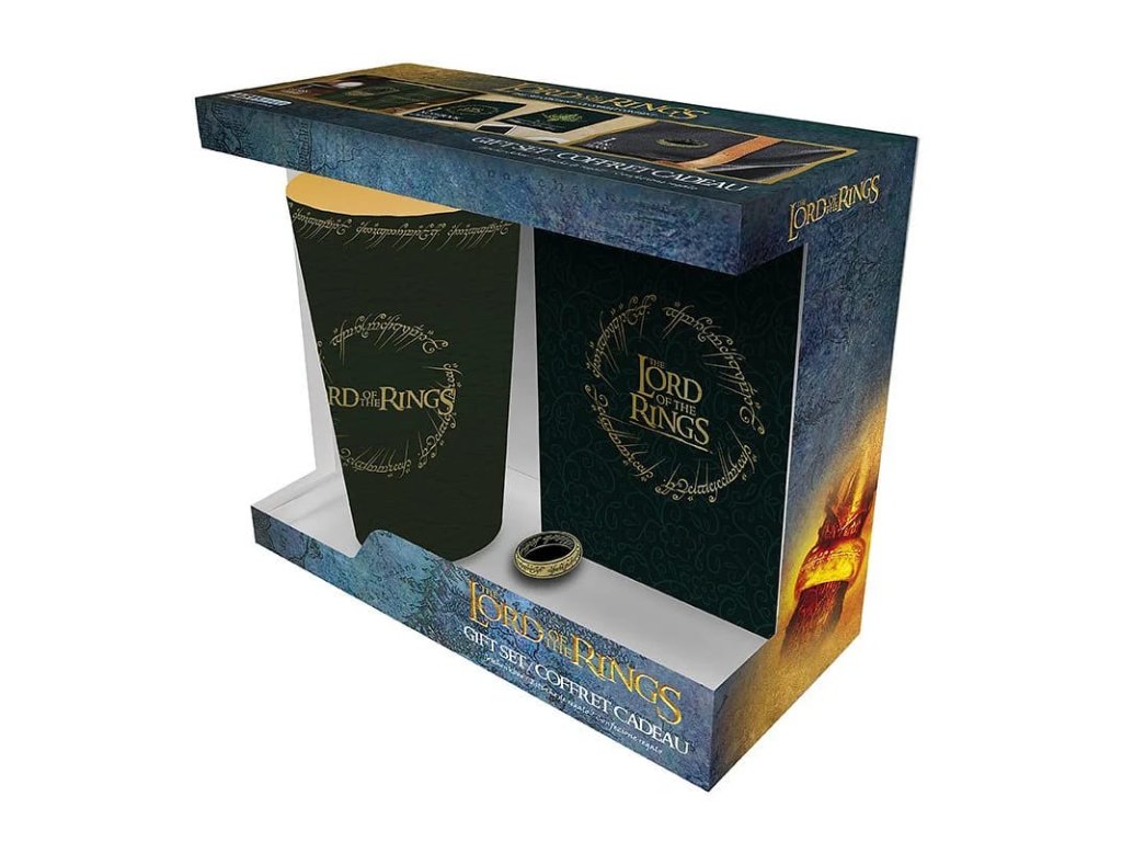 S dárkovou sadou pro milovníky fantasy trilogie Pán prstenů získáte hned trojici jedinečných předmětů s motivem Prstenu moci: sklenici, kterou také zdobí vývěsní štít hostince U Skákavého poníka v Hůrce, kovový odznak v podobě Jednoho prstenu a krásný linkovaný zápisník v pevných deskách, který zve k sepsání vašich vlastních příběhů.Doplňkové parametry