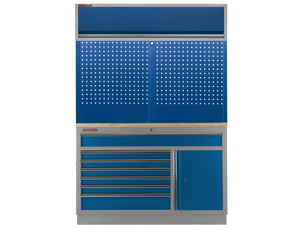 Dílenský nábytek PROFI BLUE s dřevěnou deskou zaujme moderním a profesionálním vzhledem. Kombinace modré RAL 5023 a šedé RAL 7035 barvy se bude vyjímat v každé garáži i dílně.