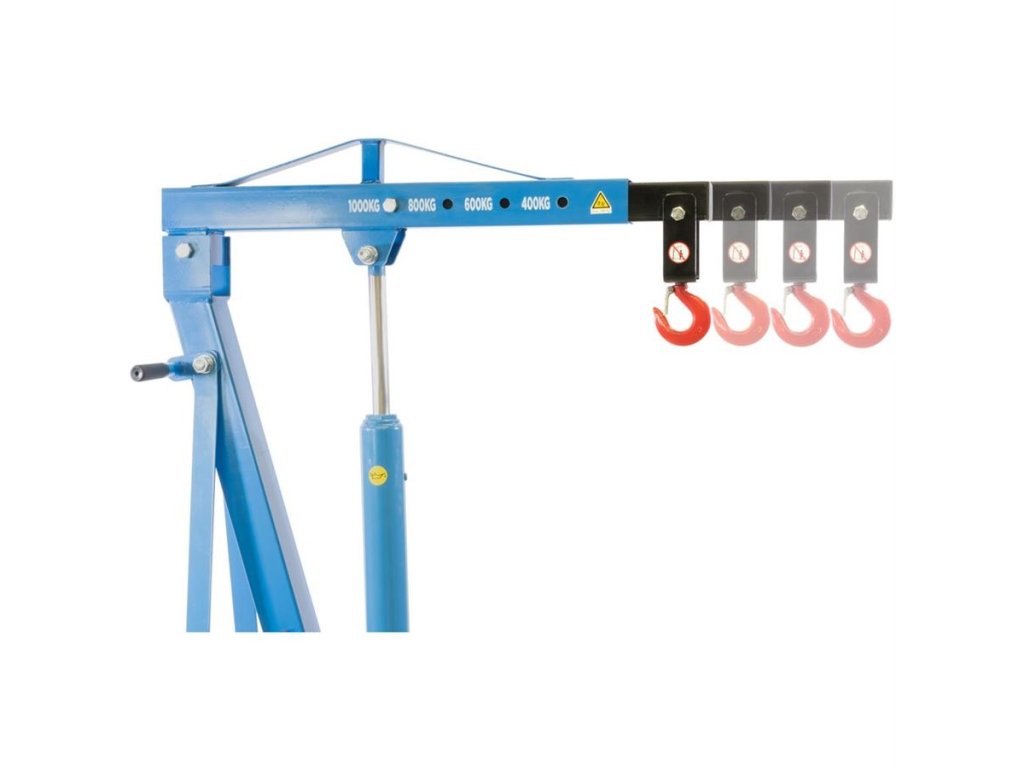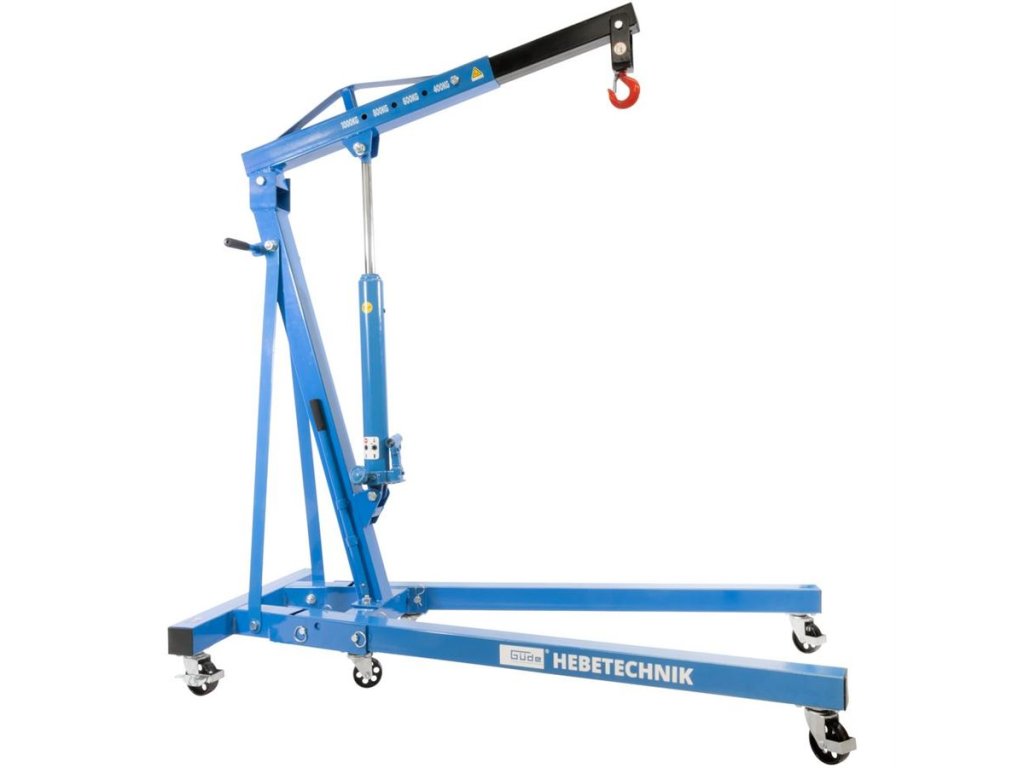 Dílenský jeřáb Güde 1000.1 je nepostradatelným pomocníkem při náročných zvedacích pracích v dílně, zejména při zvedání motorů a jiných těžkých břemen.