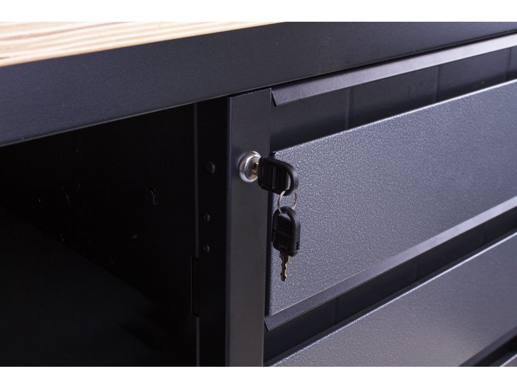 Díky uzamykatelným zásuvkám a skříňkám nemusíte mít strach před nezvanými hosty a uložené nářadí zůstane v bezpečí.