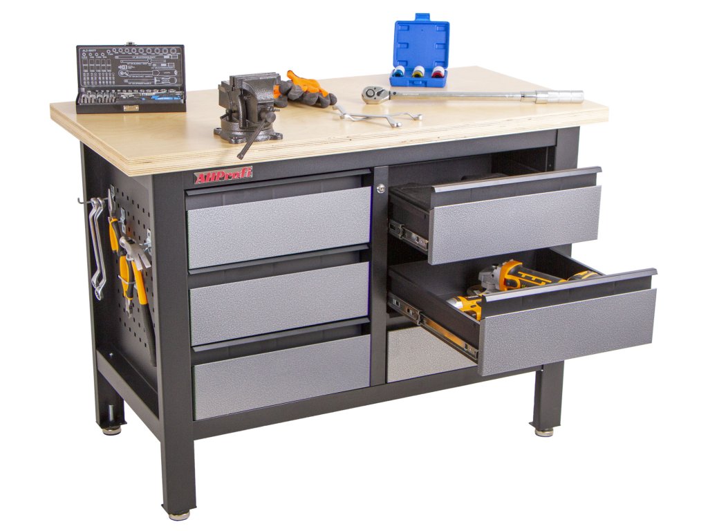Na pracovní dřevěnou desku o rozměrech 1200 x 600 mm se vejde spousta používaného nářadí, jako je například gola sada nebo momentový klíč.