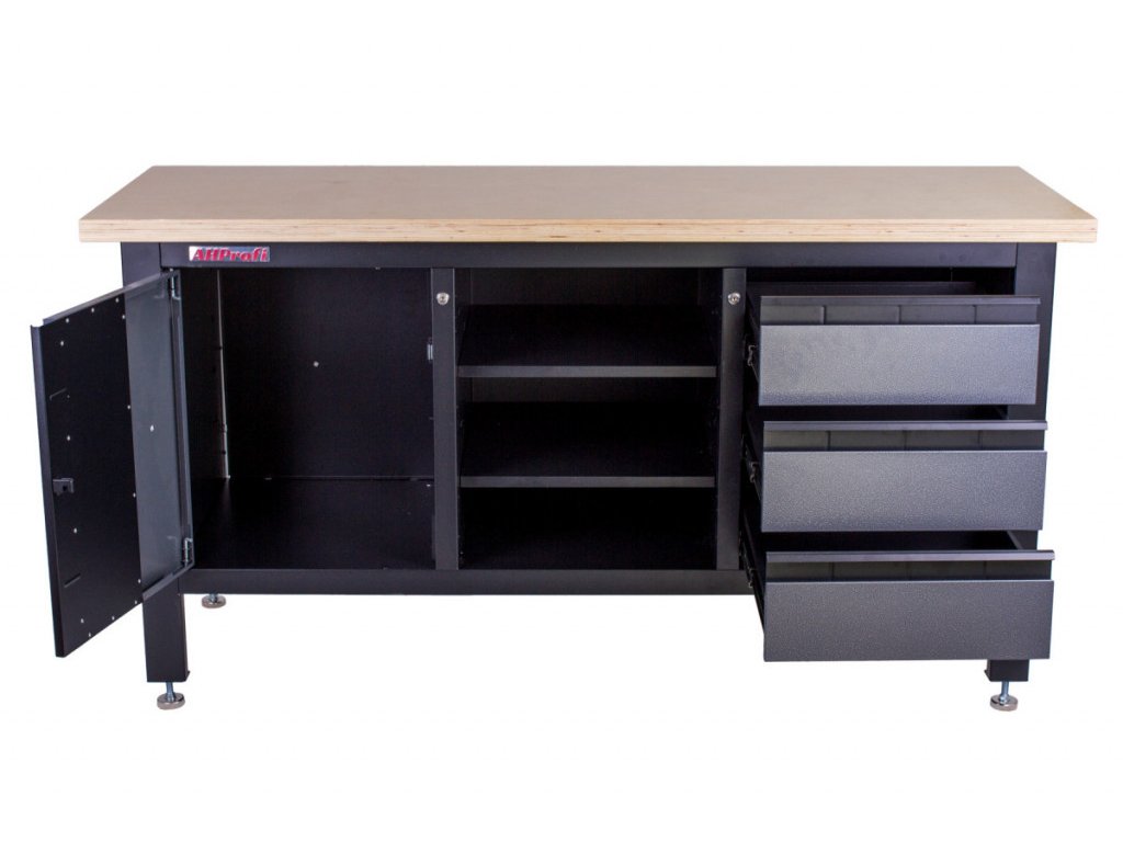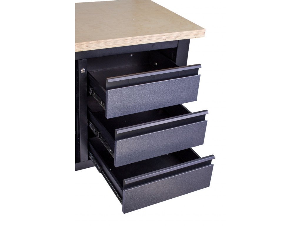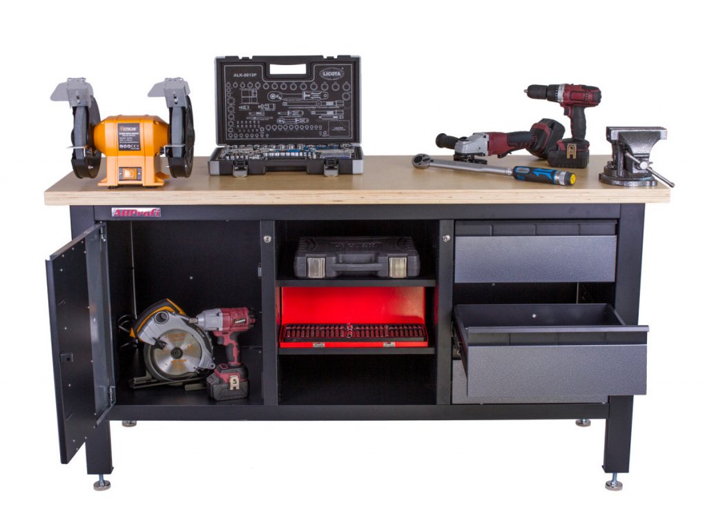 - Skříňka, 3 zásuvky a 3 regály pro přehledné uložení ručního i elektrického nářadí.
