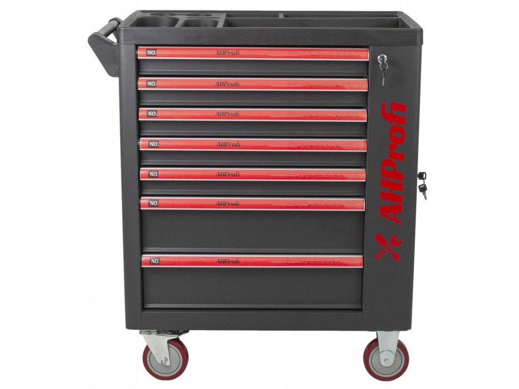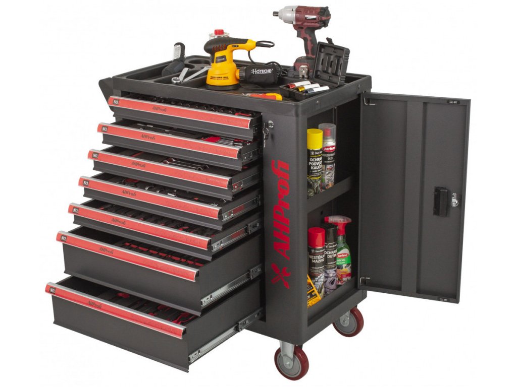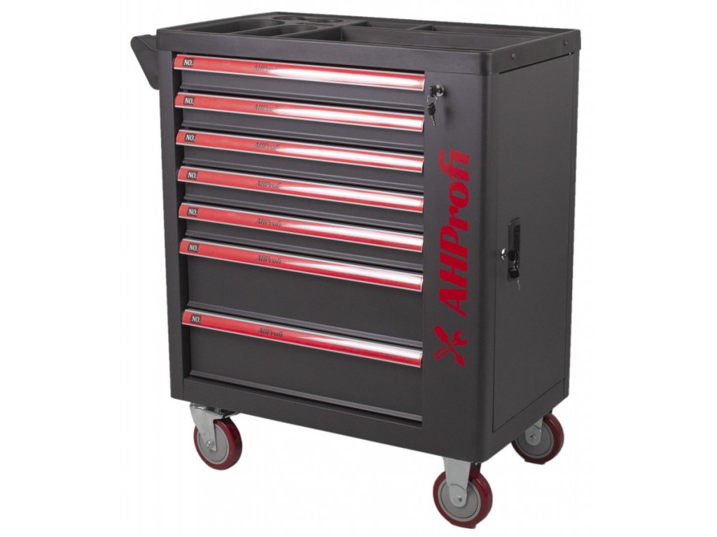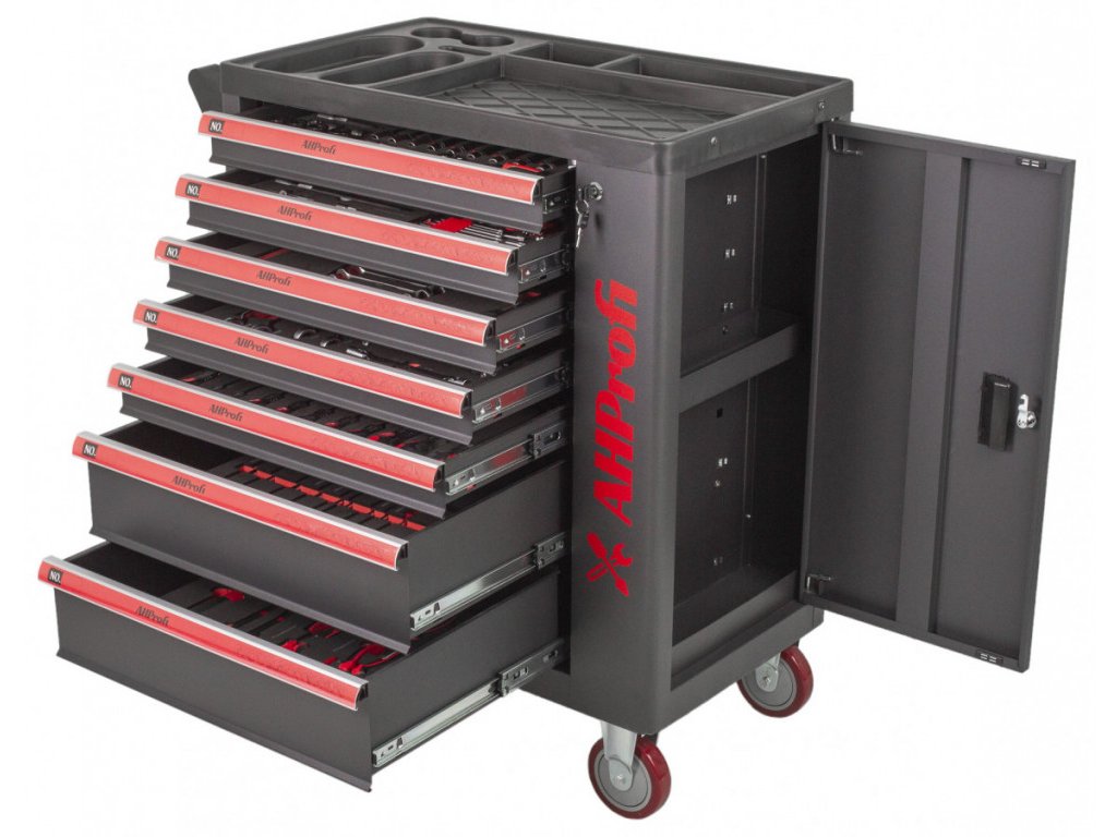 Dílenský vozík Exclusive s nářadím, 7 zásuvek, boční skříňka, 269 kusů - AHProfi