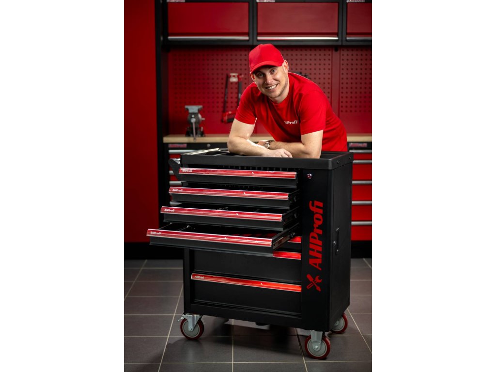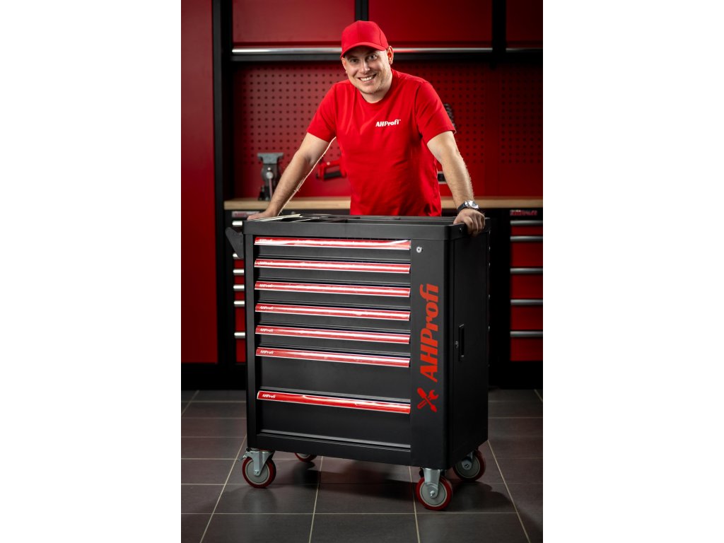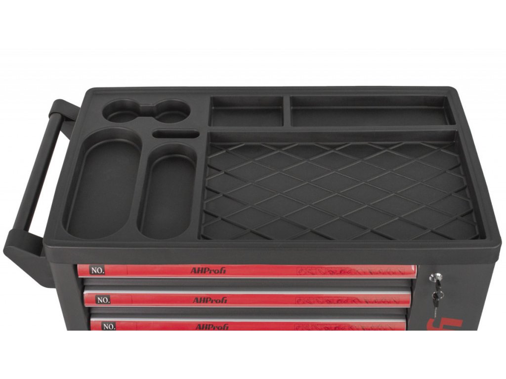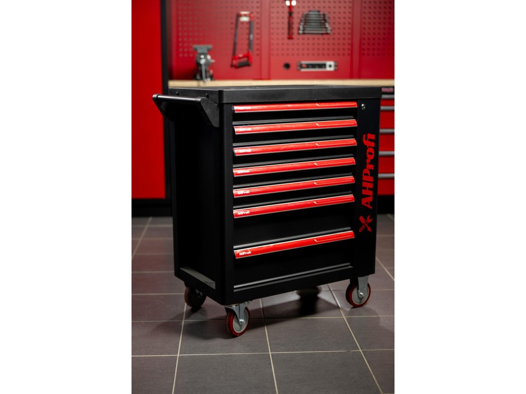Dílenský vozík Exclusive s nářadím, 7 zásuvek, boční skříňka, 269 kusů - AHProfi