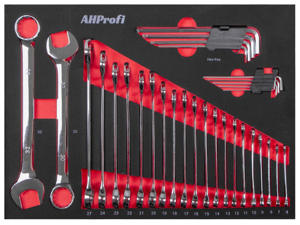 | Očkoploché klíče: 6, 7, 8, 9, 10, 11, 12, 13, 14, 15, 16, 17, 18, 19, 20, 21, 22, 23, 24, 27, 30, 32 mm |