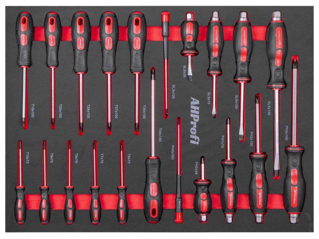 | Šroubováky Torx: T6, T7, T8, T9, T10, T15, T20, T25, T27, T30, T40 |