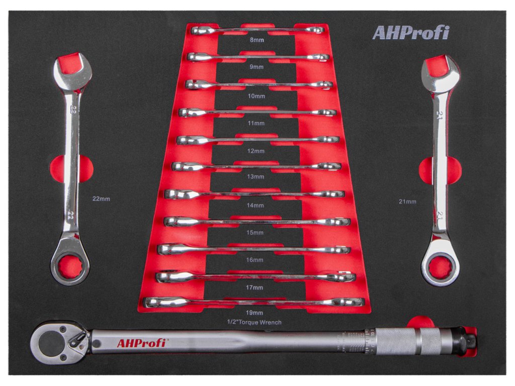 | Ráčnové klíče: 8, 9, 10, 11, 12, 13, 14, 15, 16, 17, 19, 21, 22 mm | |