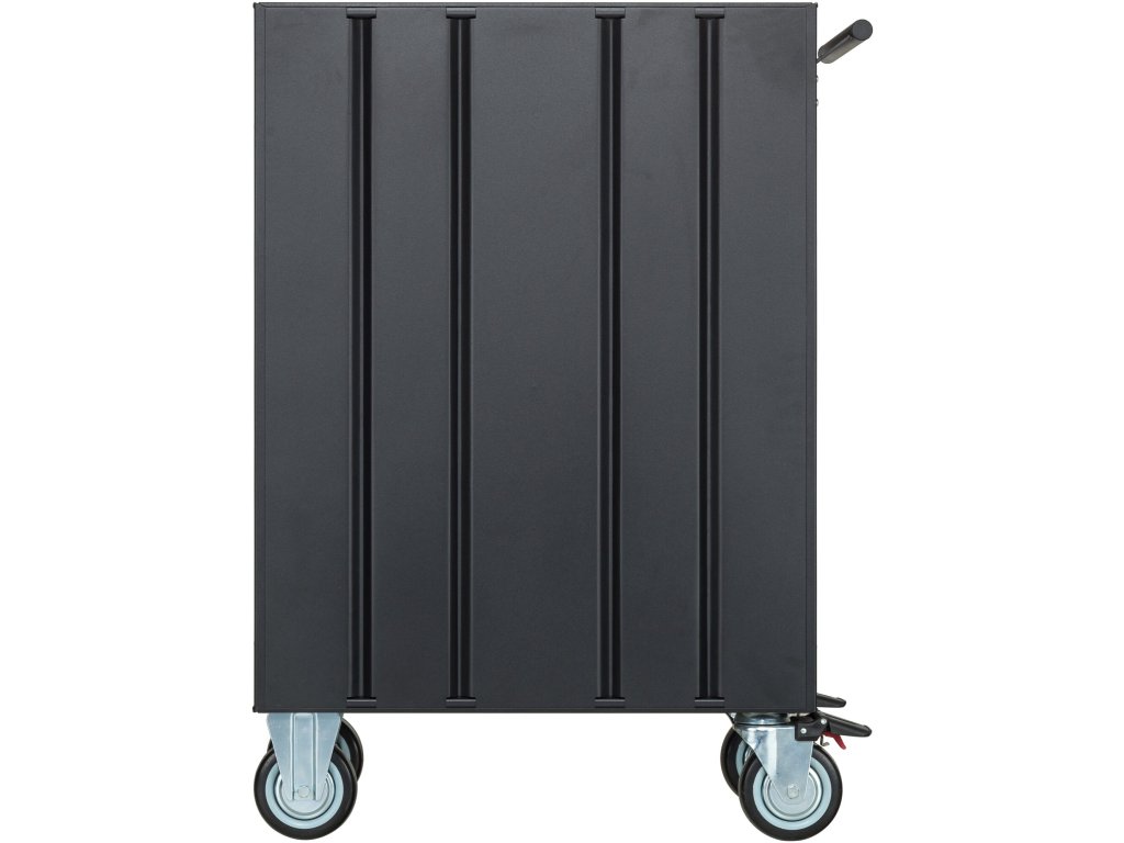 Součástí vozíku je 7 uzamykatelných zásuvek pro uložení výplní dílenského vozíku s ručním nářadím. Zásuvky jsou osazeny kuličkovými ložisky v pojezdech, čímž se zvyšuje jejich nosnost bez vlivu na výbornou vlastnost vyjíždění/zajíždění.