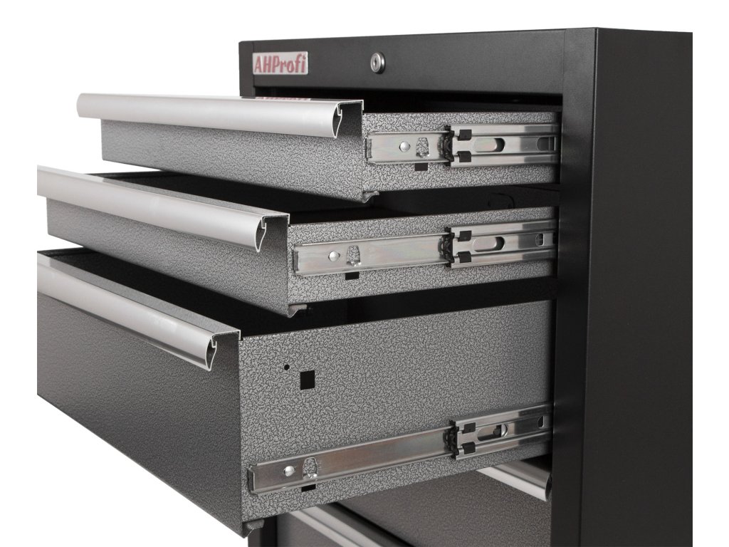 Součástí vozíku je 5 uzamykatelných zásuvek pro uložení výplní dílenského vozíku s ručním nářadím. Zásuvky jsou osazeny kuličkovými ložisky v pojezdech, čímž se zvyšuje jejich nosnost bez vlivu na výbornou vlastnost výjíždění/zajíždění.