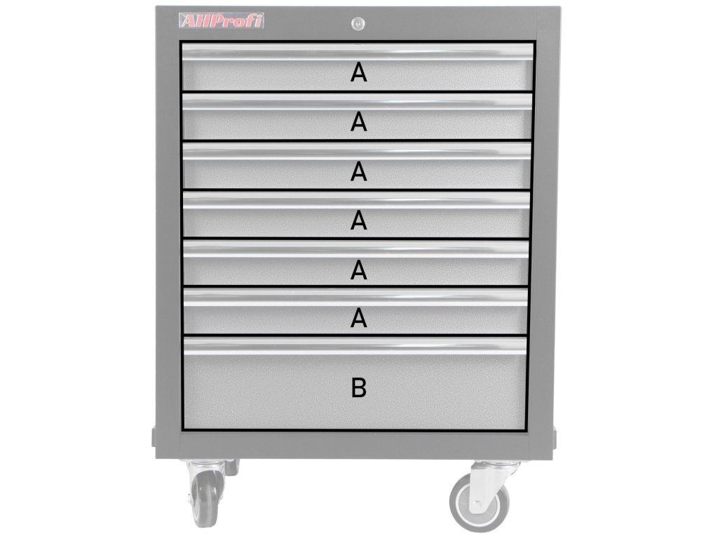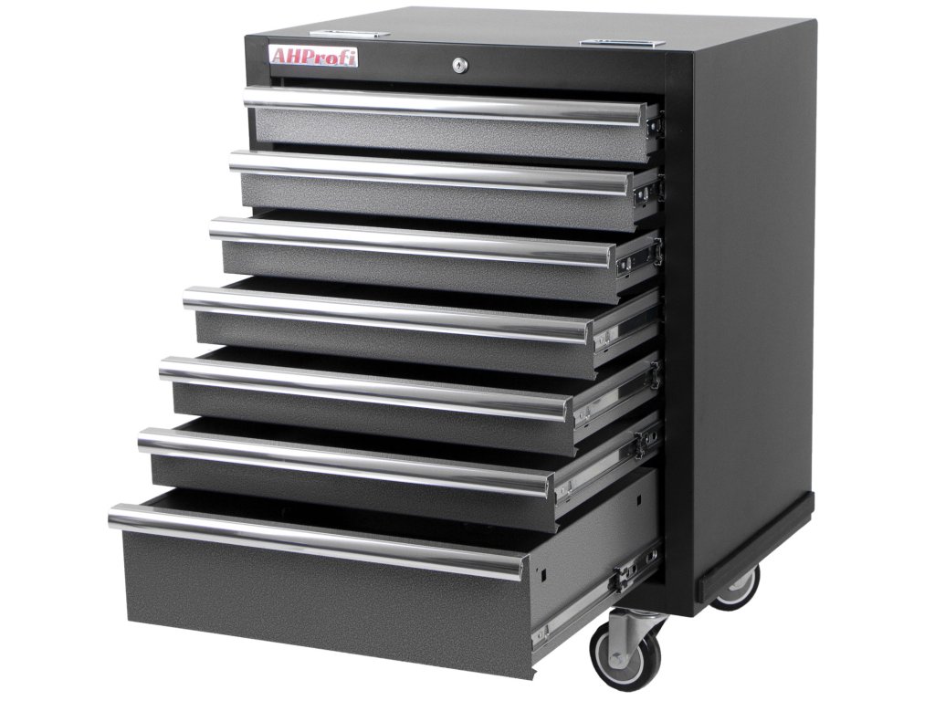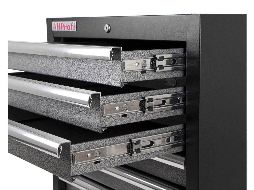 Součástí vozíku je 7 uzamykatelných zásuvek pro uložení výplní dílenského vozíku s ručním nářadím. Zásuvky jsou osazeny kuličkovými ložisky v pojezdech, čímž se zvyšuje jejich nosnost bez vlivu na výbornou vlastnost vyjíždění/zajíždění.
