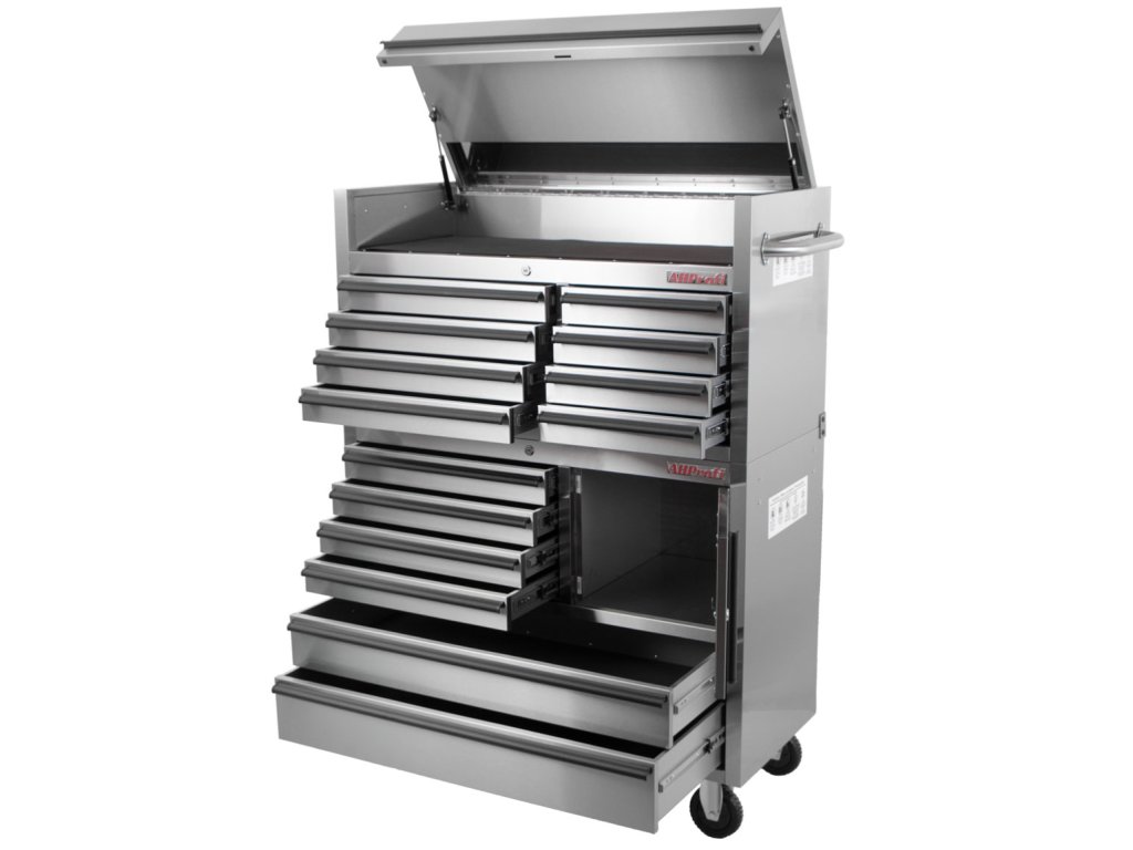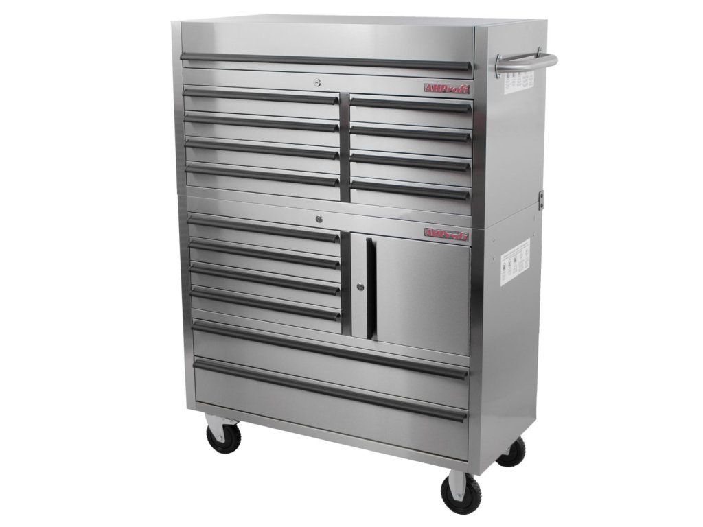 - Celkem 14 zásuvek a 1 skříňka poskytují dostatek prostoru pro organizaci nářadí.