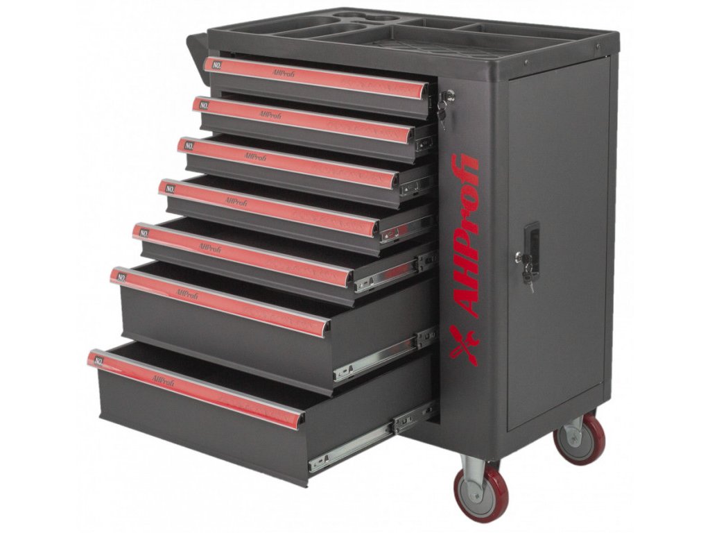 Vozík má 7 šuplíků do kterých můžete umístit výplně nebo nářadí.