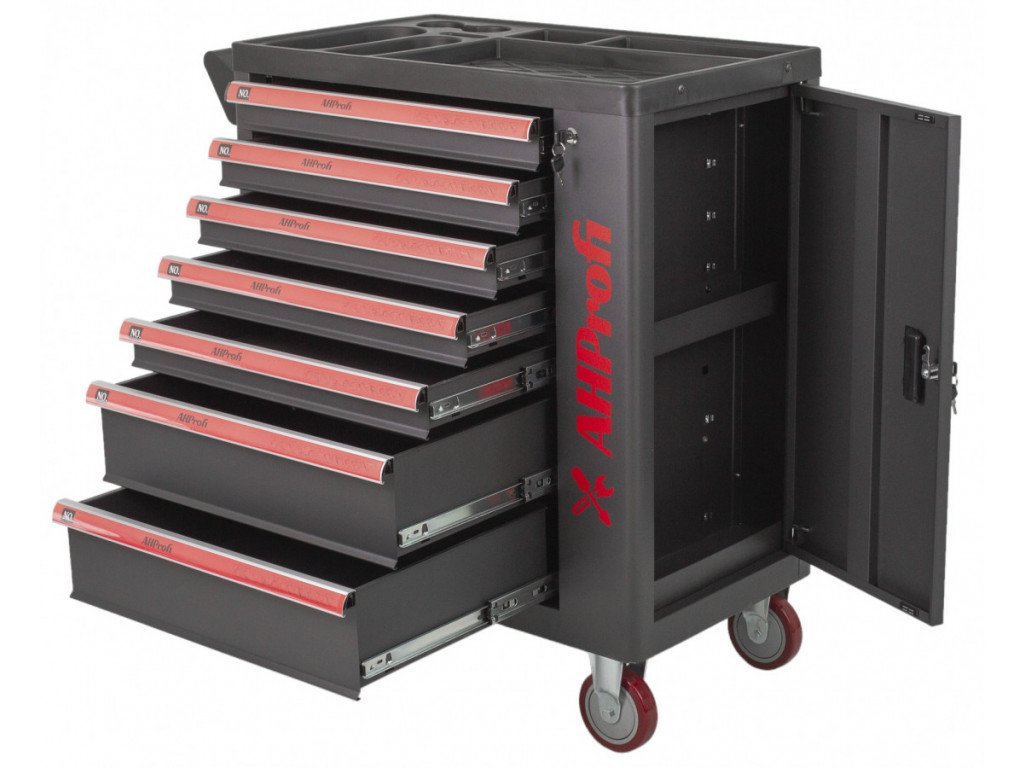 Pojízdný kovový dílenský vozík se 7 šuplíky na nářadí je nezbytným vybavením dílny. Vozík obsahuje 7 zásuvek do kterých se vejde spousta nářadí.