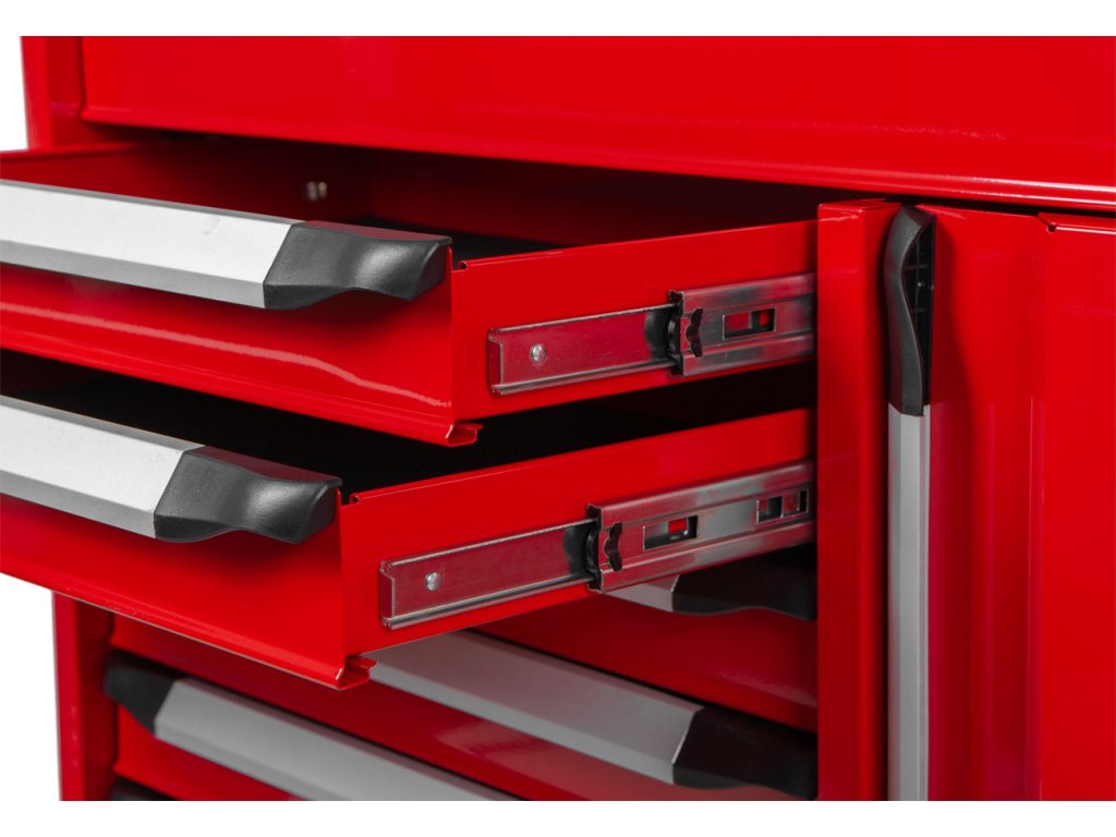 Vozík disponuje 7 zásuvkami různých velikostí, což umožňuje přehledné uspořádání nářadí: