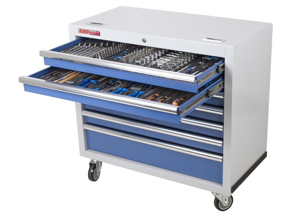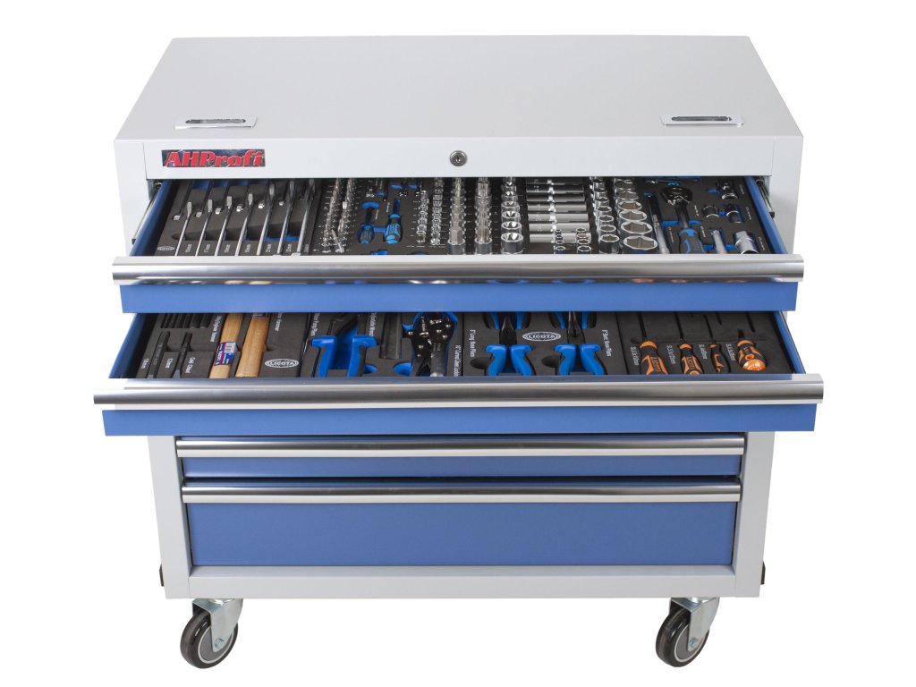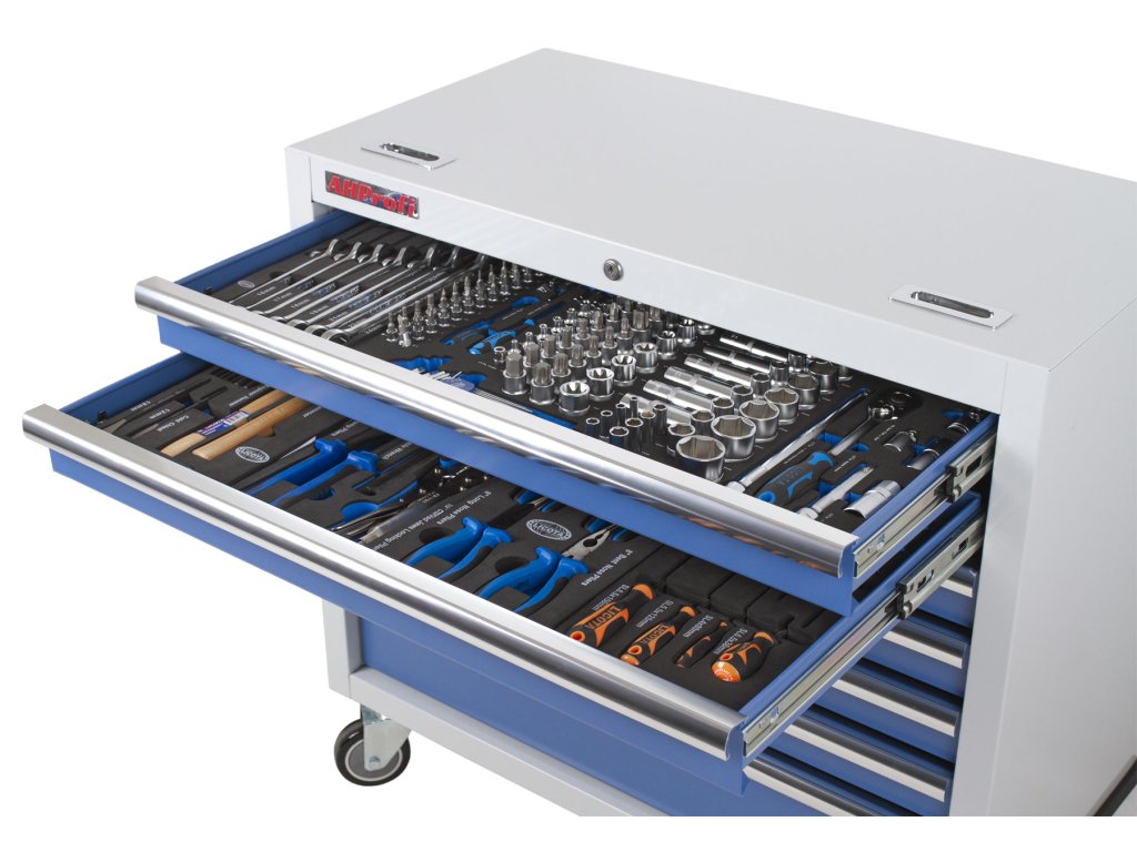 Horní dva šuplíky obsahují výplně s nejpoužívanějším nářadím. Nářadí je uloženo v pěnových výplních ve kterých skvěle drží, na rozdíl od plastové výplně.