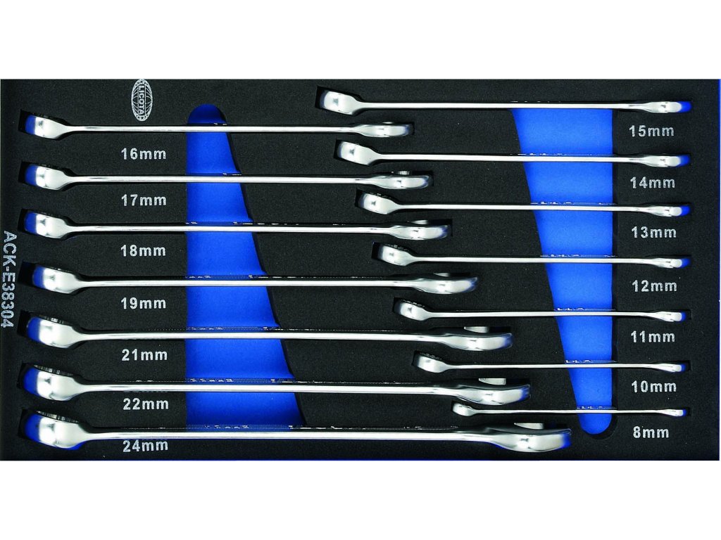 - Očkoploché klíče: 8, 10, 11, 12, 13, 14, 15, 16, 17, 18, 19, 21, 22 a 24 mm.