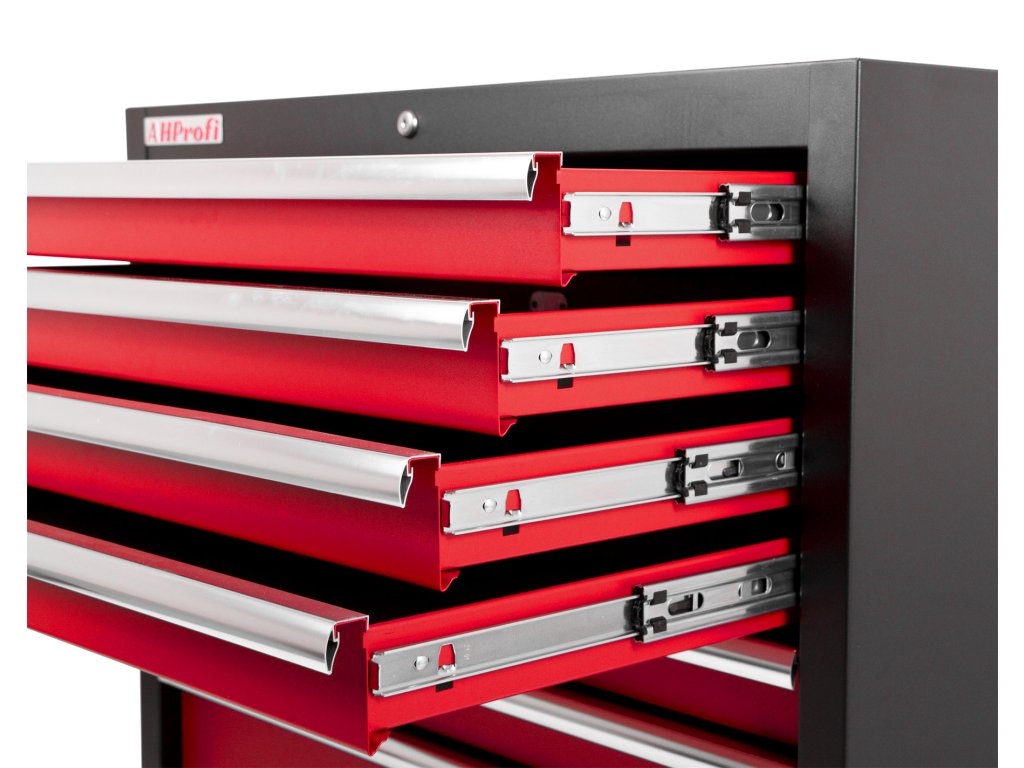 Součástí vozíku je 7 uzamykatelných zásuvek pro uložení výplní dílenského vozíku s ručním nářadím. Zásuvky jsou osazeny kuličkovými ložisky v pojezdech, čímž se zvyšuje jejich nosnost bez vlivu na výbornou vlastnost výjíždění/zajíždění.