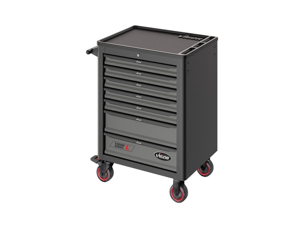 Dílenský vozík je celokovový, samotná pracovní plocha dílenského vozíku je z tvrzeného plastu s prolisy pro uložení drobného montážního materiálu.