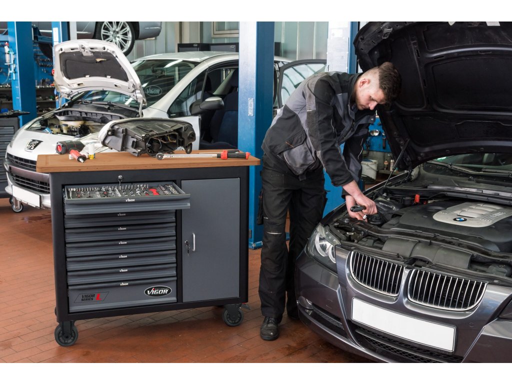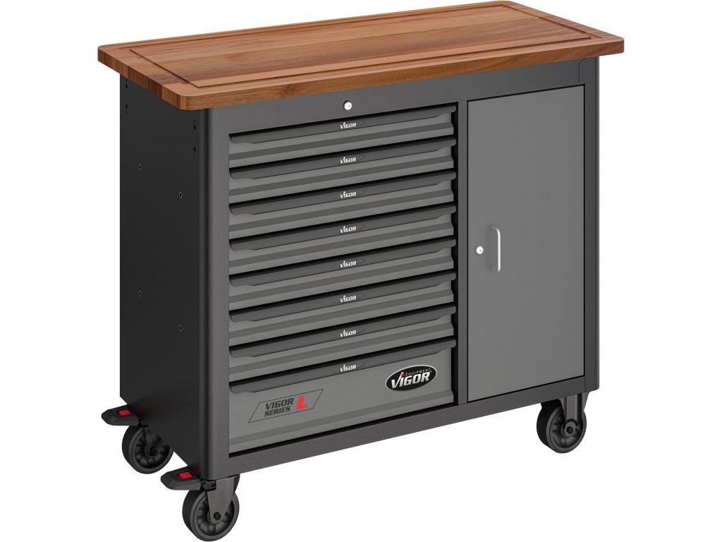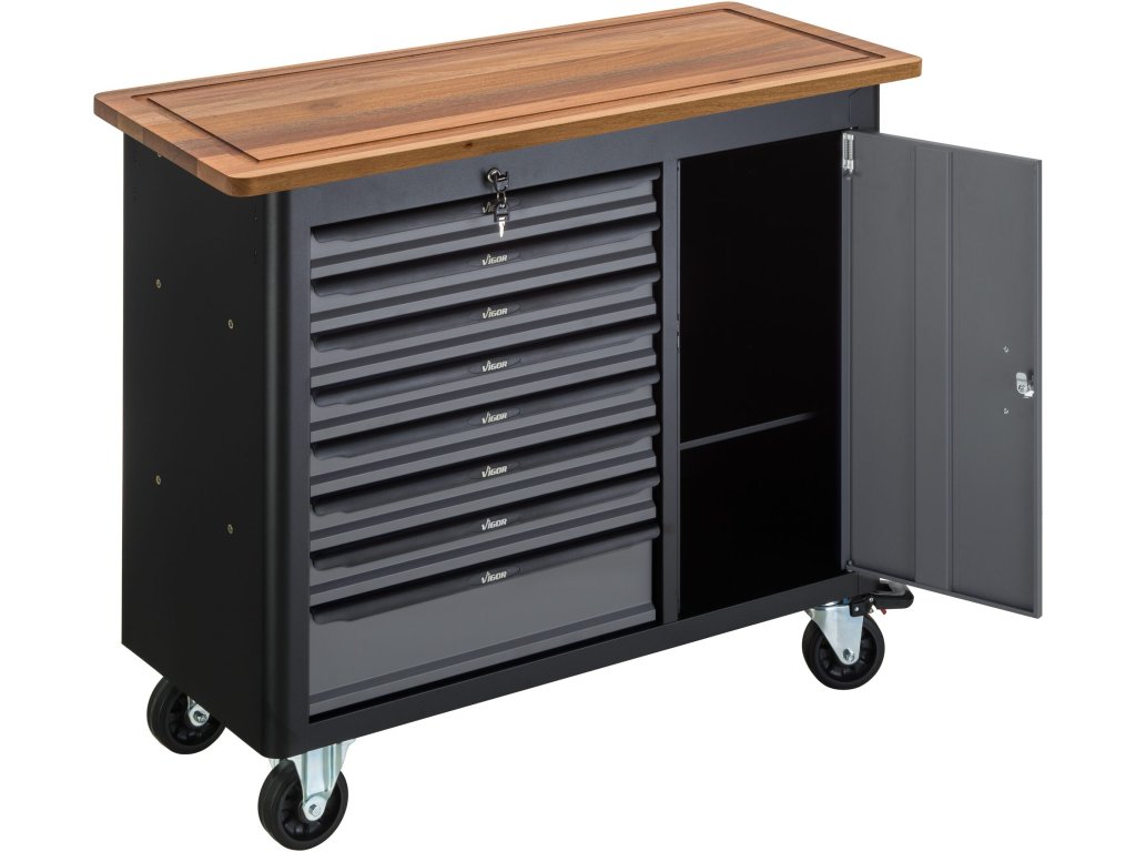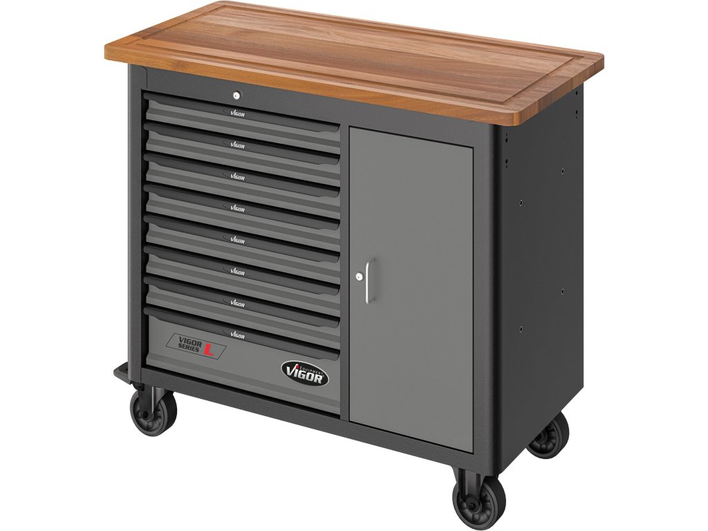 Dílenský vozík s nářadím 375 dílů, 8 zásuvek a dvířka, VIGOR 1000 - V5158