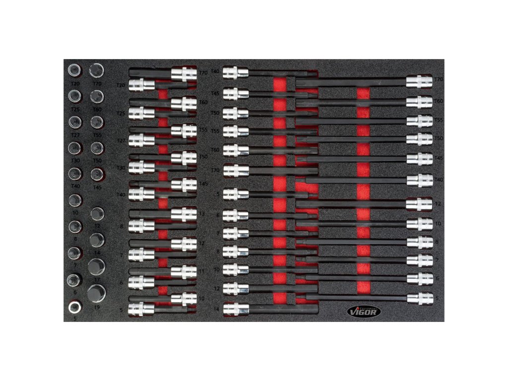 | 32 ks | Nástrčné hlavice s bitem TORX 1/2": T20, T25, T27, T30, T40, T45, T50, T55, T60, T70 |