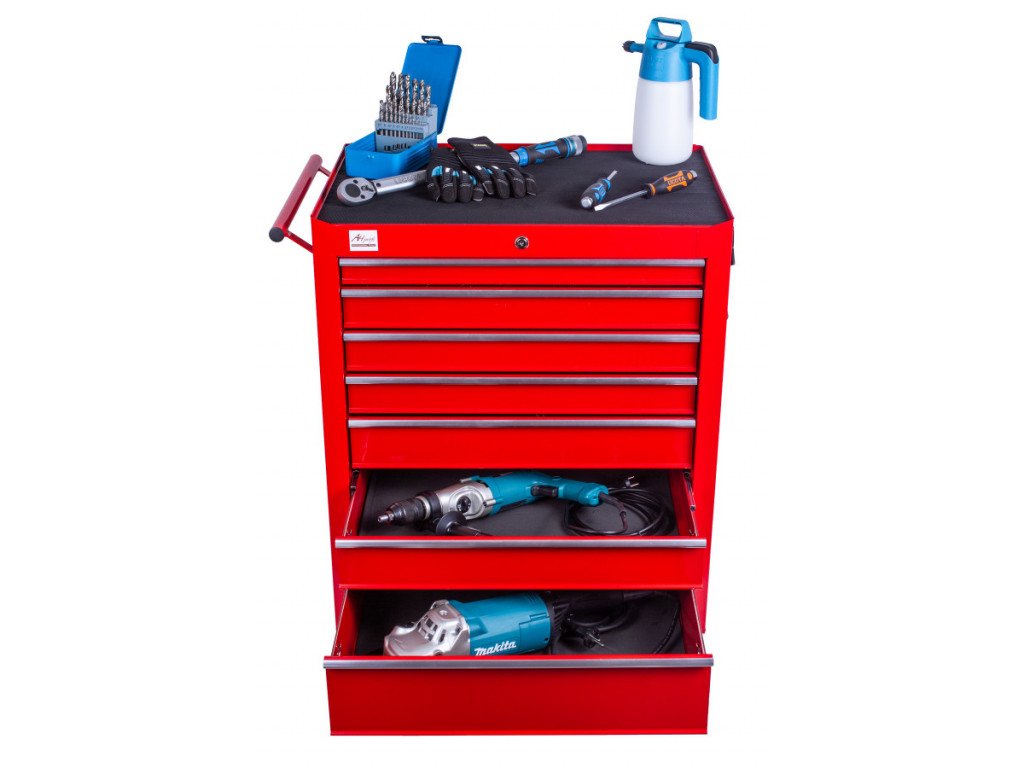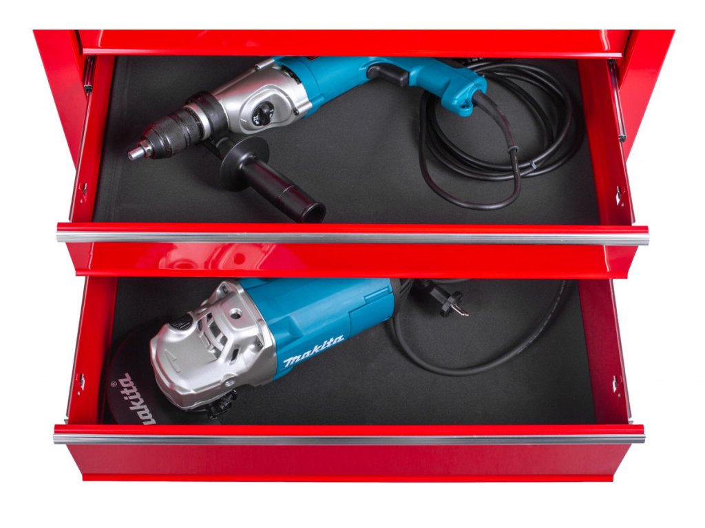 Pracovní plocha je opatřena gumovou podložkou pro zamezení poškození nářadí a vozíku.